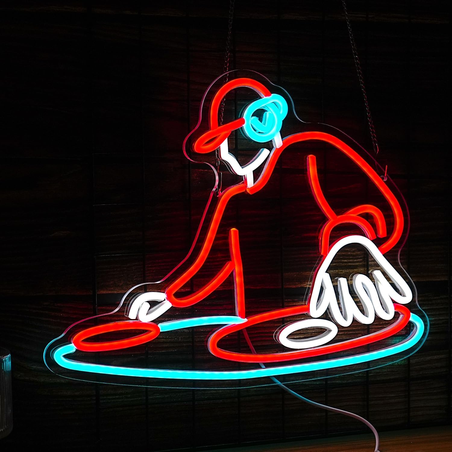 • Exquisite workmanship: The DJ player neon light signs is made of LED flexible light strips and high-quality transparent acrylic backboard, with adjustable light switches, advanced electrode system, low voltage, low power consumption, and no risk of glass breakage