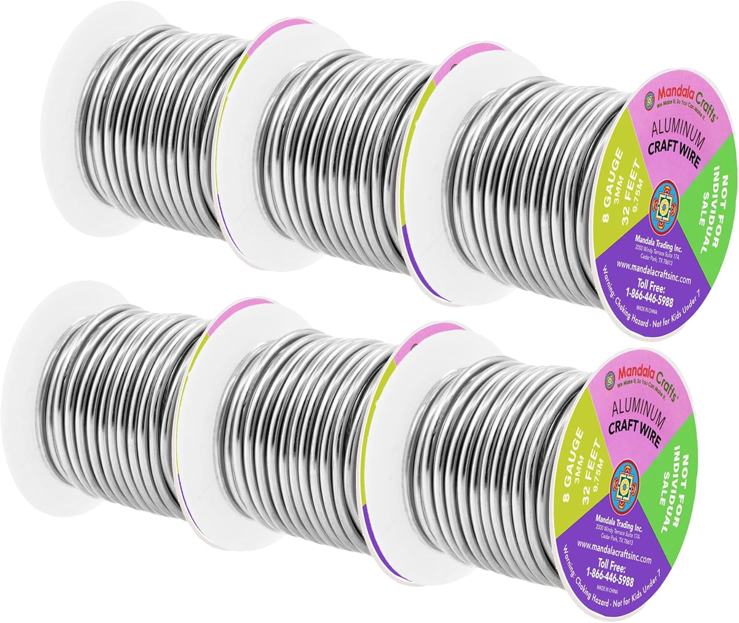 • 6 Bulk 8 Gauge Aluminum Wire Rolls for Crafts: Each 20 feet long, round 3.26mm wire or 8-gauge crafting wire is continuous. The silver combo thick wire with 8g wire gauge fits for indoor & outdoor use.