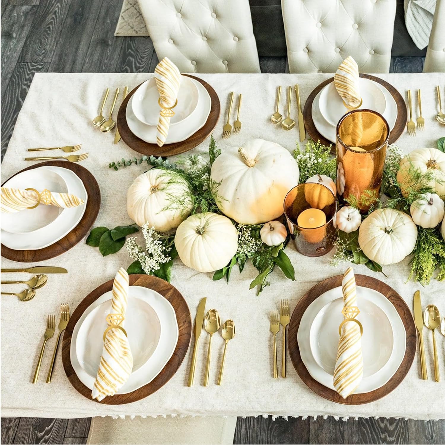• Versatile Table Decor for Various Occasions-- Whether it's a family dinner, romantic Candlelight Dinner,birthday party, themed event, wedding, engagement Party, bachelorette party,Cristmas, Thanksgiving, or Valentine's Day celebration, this napkins rings serves as a versatile table decoration, enhancing the ambiance and aesthetic appeal of any occasion