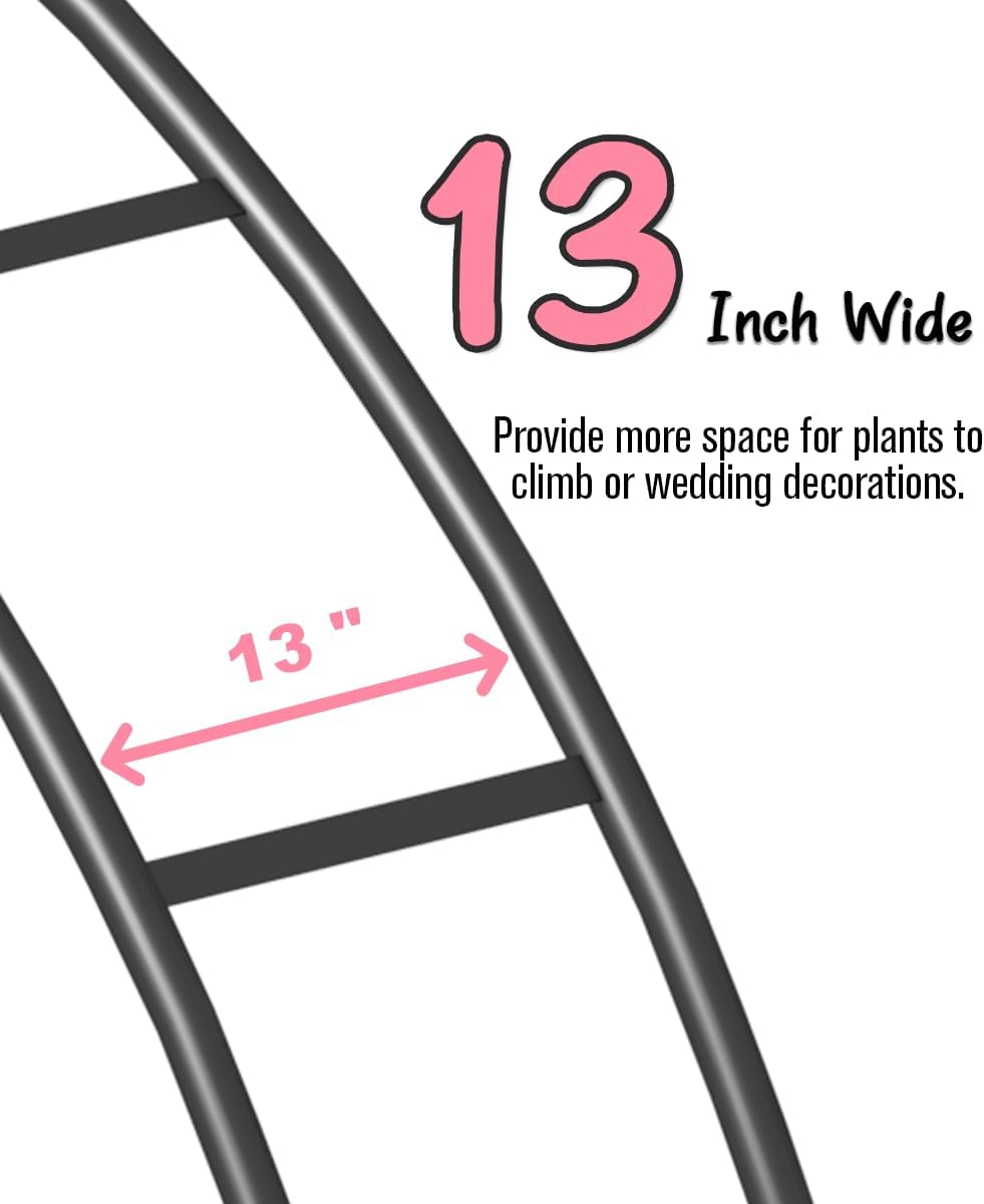 • Extra Large Dimension: With its expansive dimensions of 8 feet wide by 7 feet high, this grand wedding arch offers ample space for multiple individuals to pass through simultaneously. The sides were upgraded to lengthen the width to 13 inches for greater decorative area. For added stability, the arch is equipped with 4 sturdy hooks and 2 sandbags, ensuring it remains firmly in place.