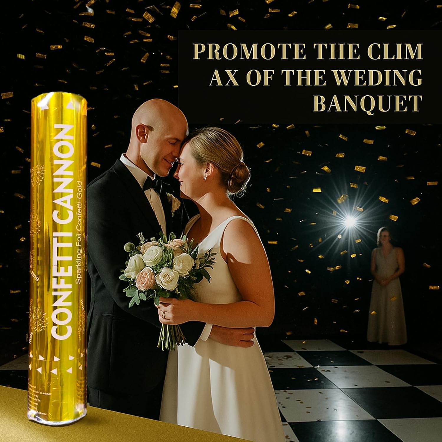 • SURPRISES AND BIG REVEALS:Enhance unexpected surprises with the dramatic effect of gold confetti poppers,creates stunning visuals, perfect for weddings, birthdays, and New Year’s Eve parties