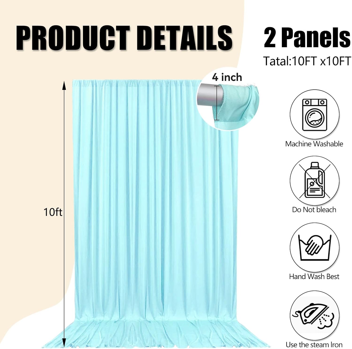 10ft x 10ft Lake Blue Backdrop Curtains for Parties, Fabric Satin Background Curtain with Rod Pockets for Weddings, Birthday, Baby Shower, Photography, Graduation Party Backdrop Drapes, 2 Panels