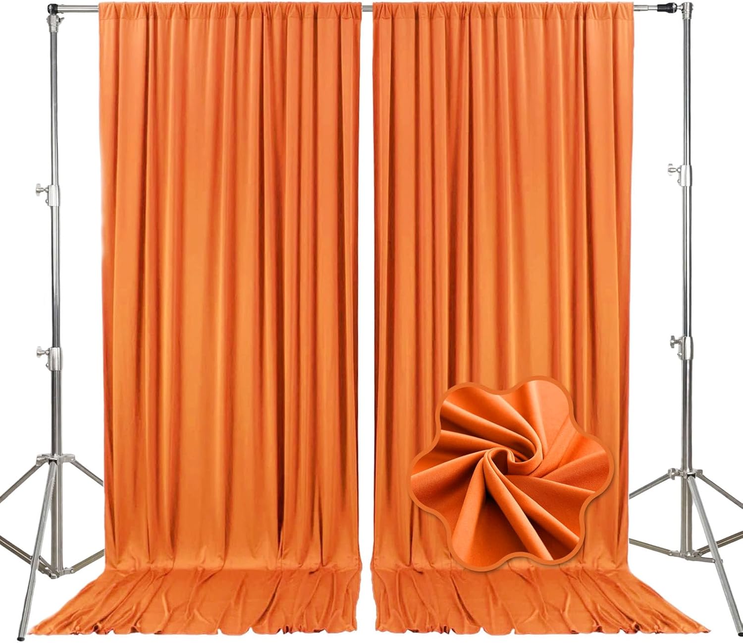 10ft x 10ft Orange Backdrop Curtains for Parties, Fabric Satin Background Curtain with Rod Pockets for Weddings, Birthday, Baby Shower, Photography, Graduation Party Backdrop Drapes, 2 Panels