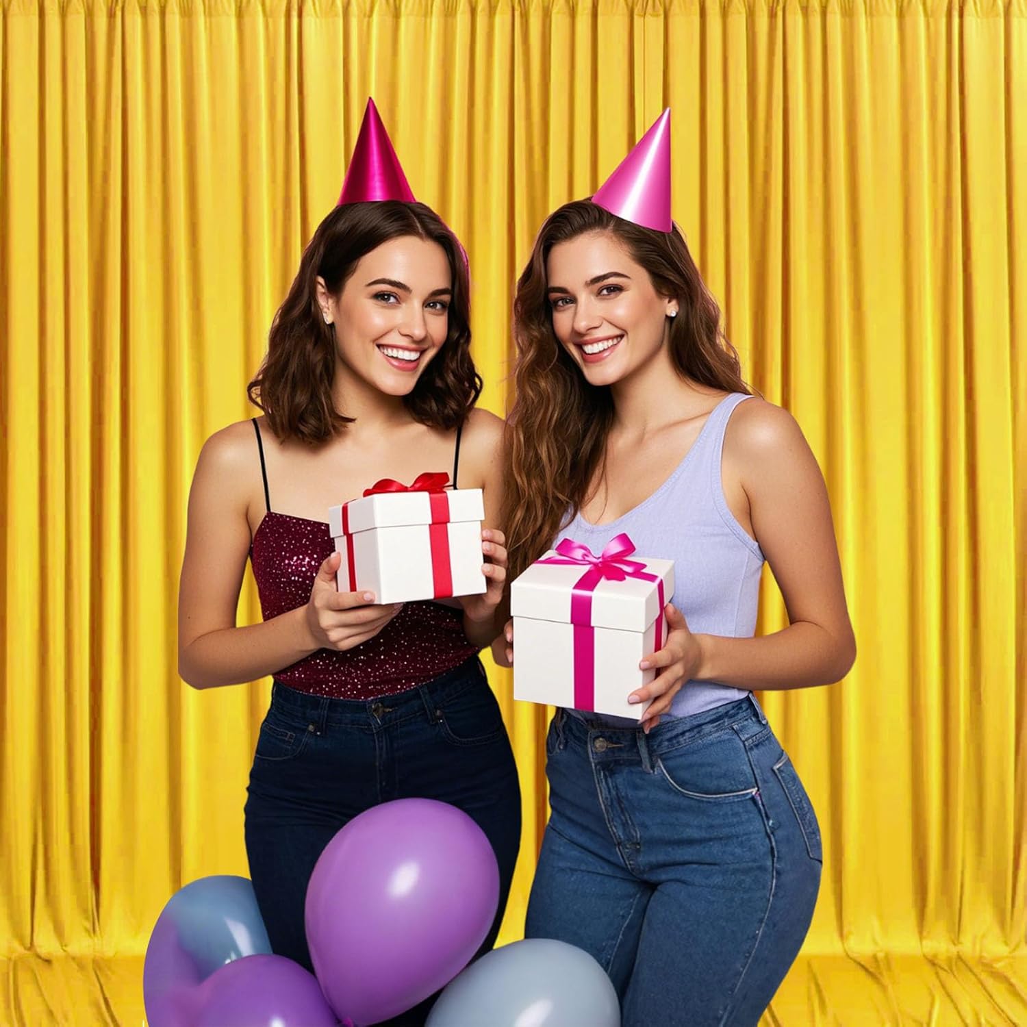 10ft x 10ft Yellow Backdrop Curtains for Parties, Fabric Satin Background Curtain with Rod Pockets for Weddings, Birthday, Baby Shower, Photography, Graduation Party Backdrop Drapes, 2 Panels