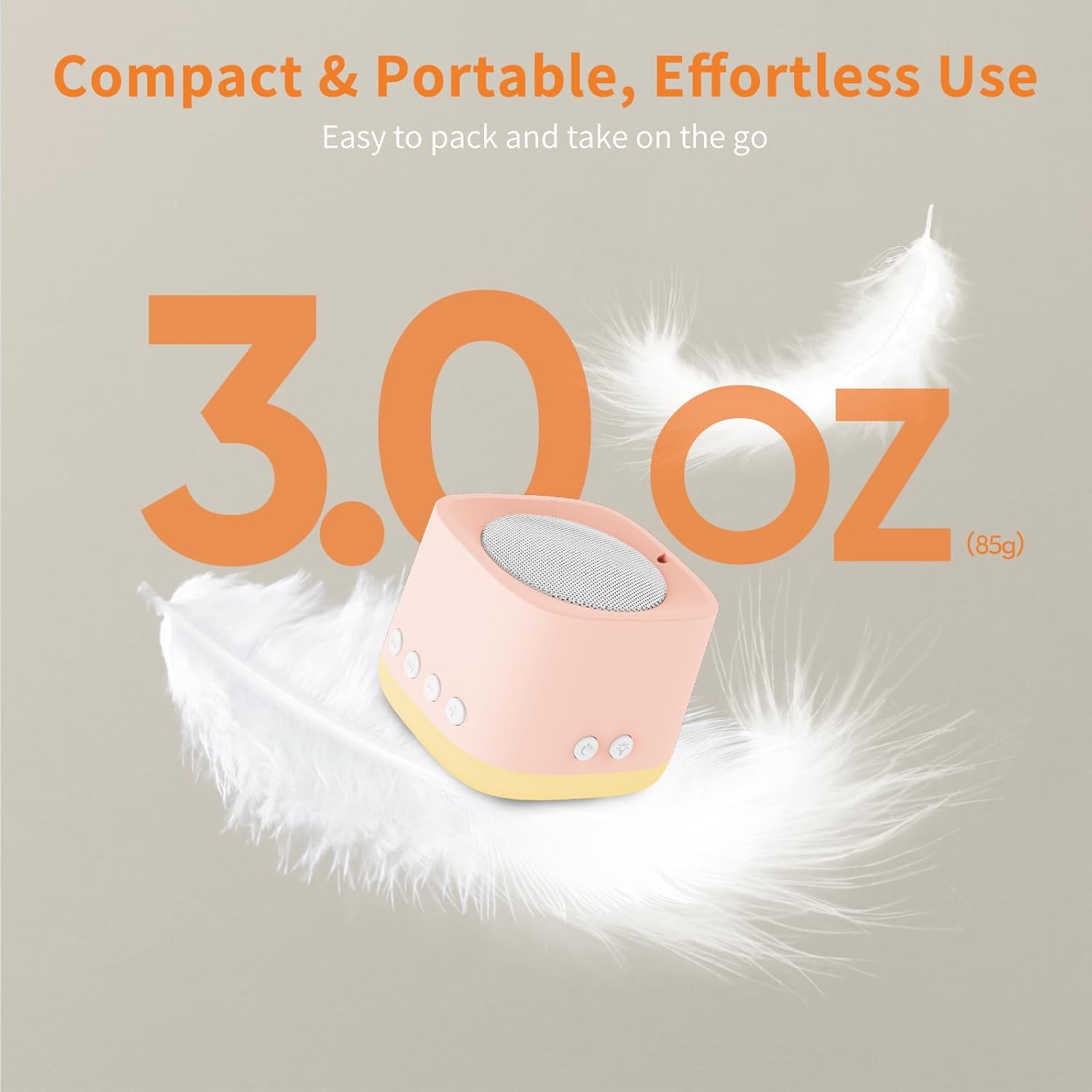 • 【Pocket-Sized with A Super Loud Sound】: This mini white noise machine fits in your palm, and the travel sound machine is a compact powerhouse, perfect for adults, kids, and baby. Especially in the hotel during travel, easy to tuck into your bag and enough to not take up much room.Don't be fooled by the small size,the mini sound machine will put out a great volume, which is perfect for drowning out background noise and creating a peaceful environment