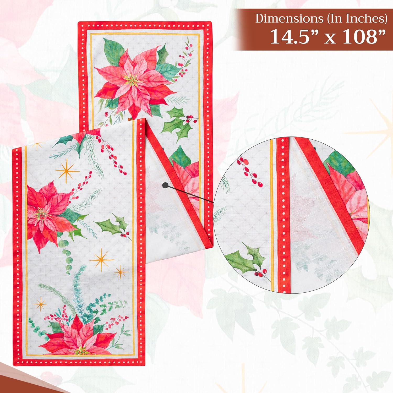Maison d' Hermine Table Runner 100% Cotton Single Layer Table Runners 108 inches Long for Thanksgiving Christmas Decorations Home Kitchen Dining Party Wedding (Poinsettia Christmas, 14.5" x 108")