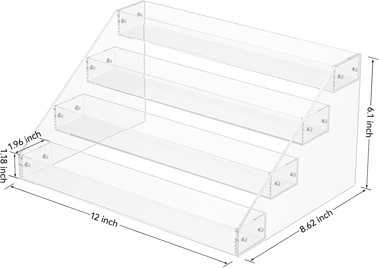 Acrylic Display Risers,12inch 4 Tier Clear Display Shelf, Perfume organizer Stand, Makeup Display Stands, Cupcake Stand Holder,Dessert Shelves, Riser Stand for Figures, Acrylic Shelves for Display