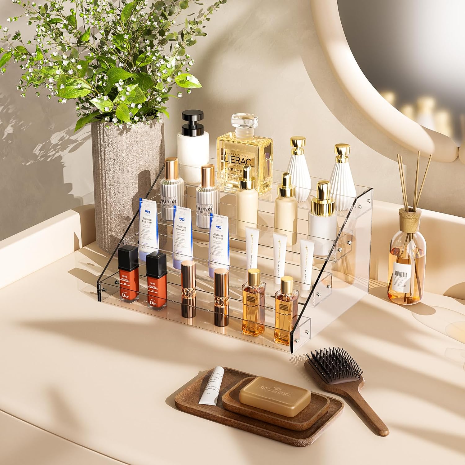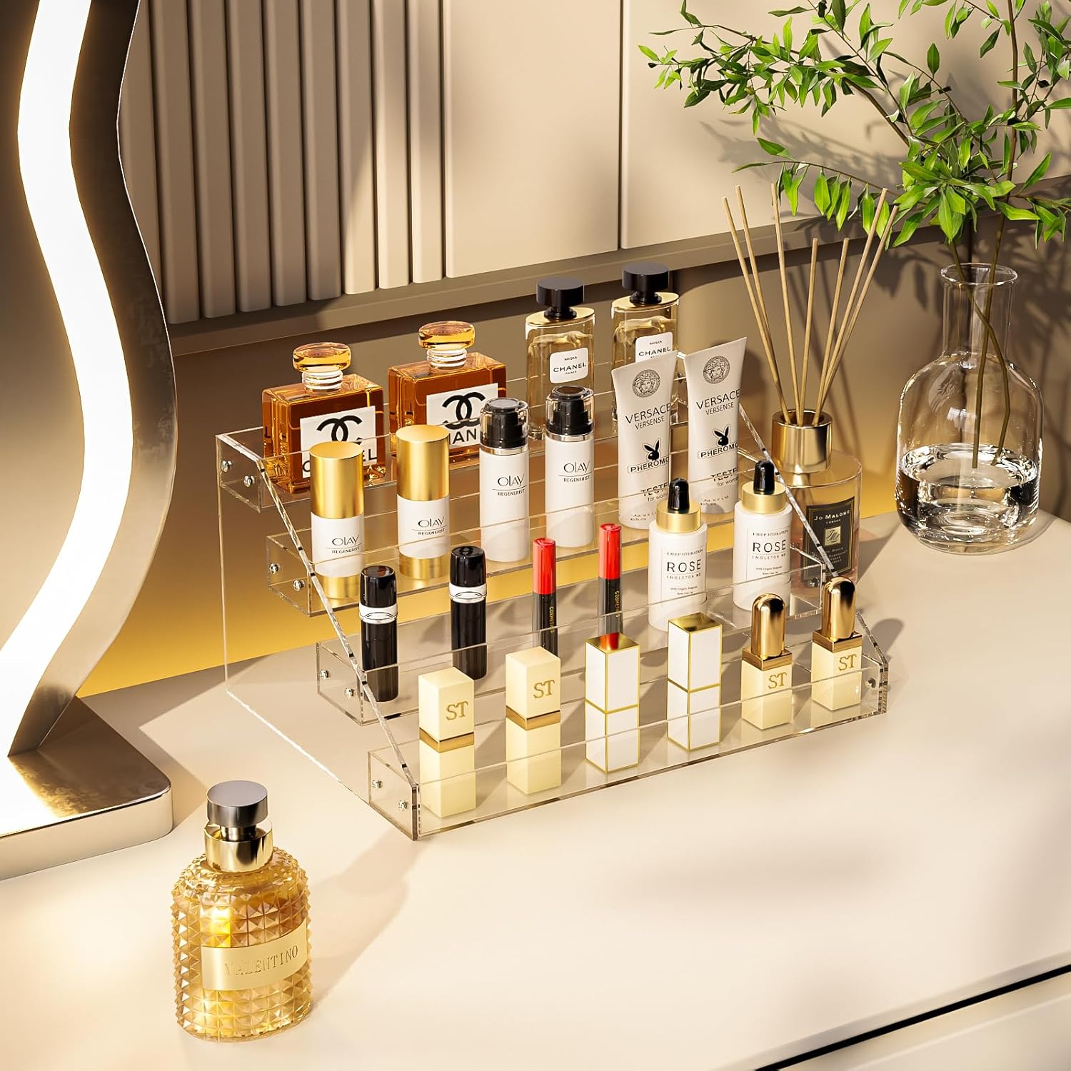 • 【Acrylic Display Stands】: This acrylic perfume organizer is made of high-quality acrylic material, which is durable and has a strong load-bearing capacity, which can perfectly display what you want. The clear acrylic display riser shelf adopts the design of triangular brackets on both sides and embedded screws, which is flat and stable, and it does not affect the placement of items.