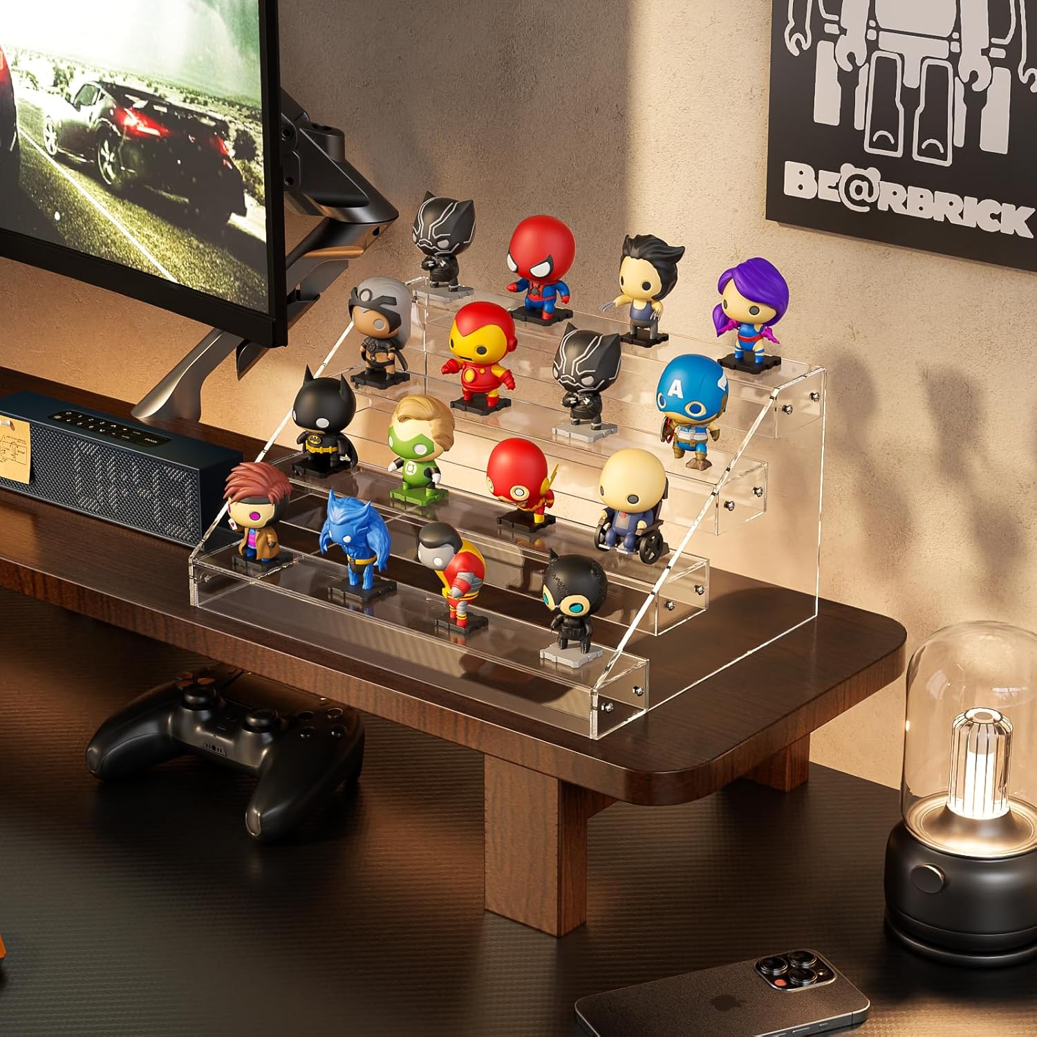 • 【Multi-layer Design】: This sticker display stand for display is designed with 4 layers, it adopts a new concave-convex double-sided design, and the slats can be used both front and back. The flat side is perfect for displaying various figurines and toys as well as perfume and cosmetics in a large size.The concave surface can better display all kinds of standard size cosmetics and perfumes. It prevents items from bumping and falling when picked up.
