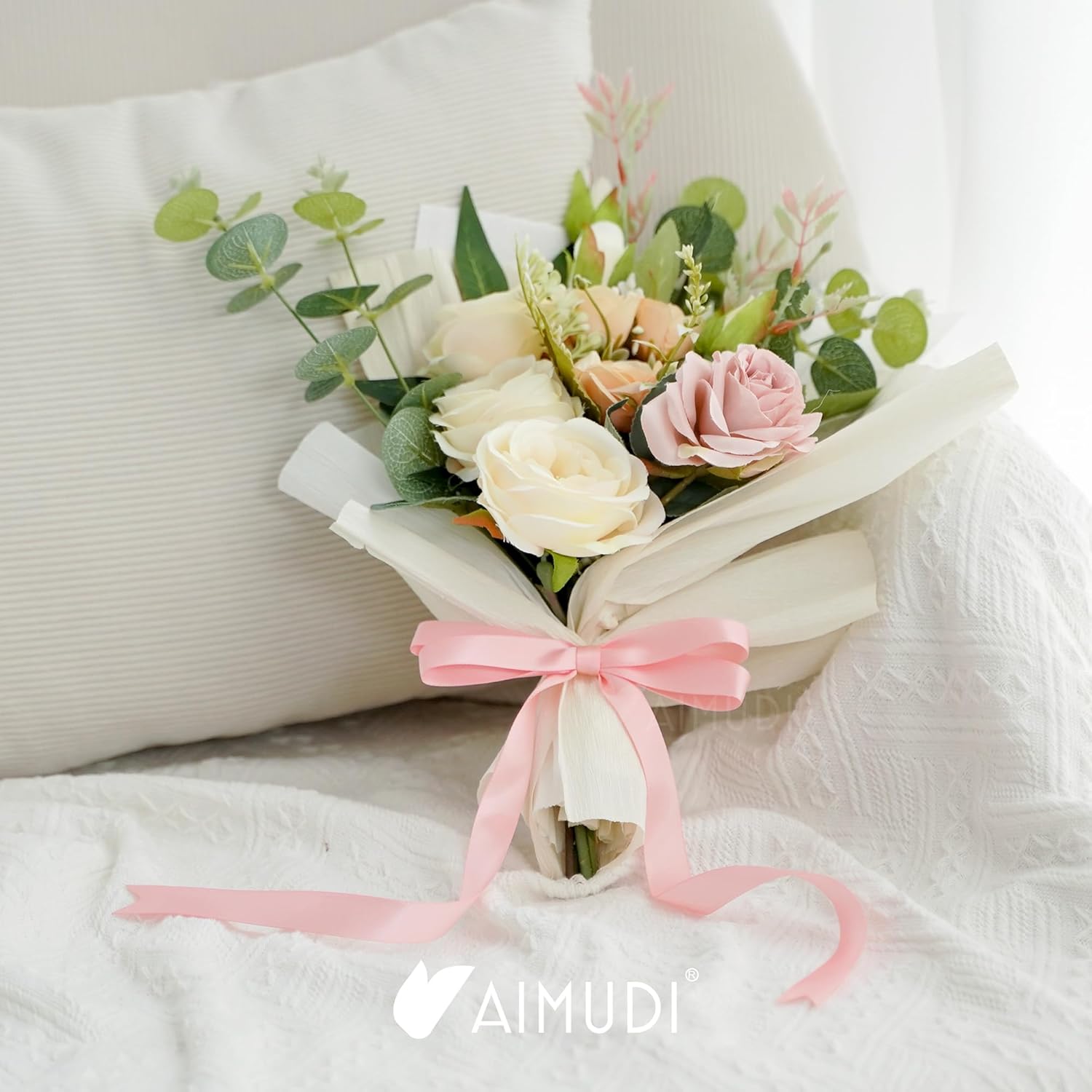 AIMUDI Baby Pink Bows 5 × 10" Satin Bows for Gift Wrapping Twist Tie Bows Premade Ribbon Bows for Bouquets Invitations Baskets Crafts Wreaths Wedding Birthday Baby Shower Party Decorations, 36 PCs