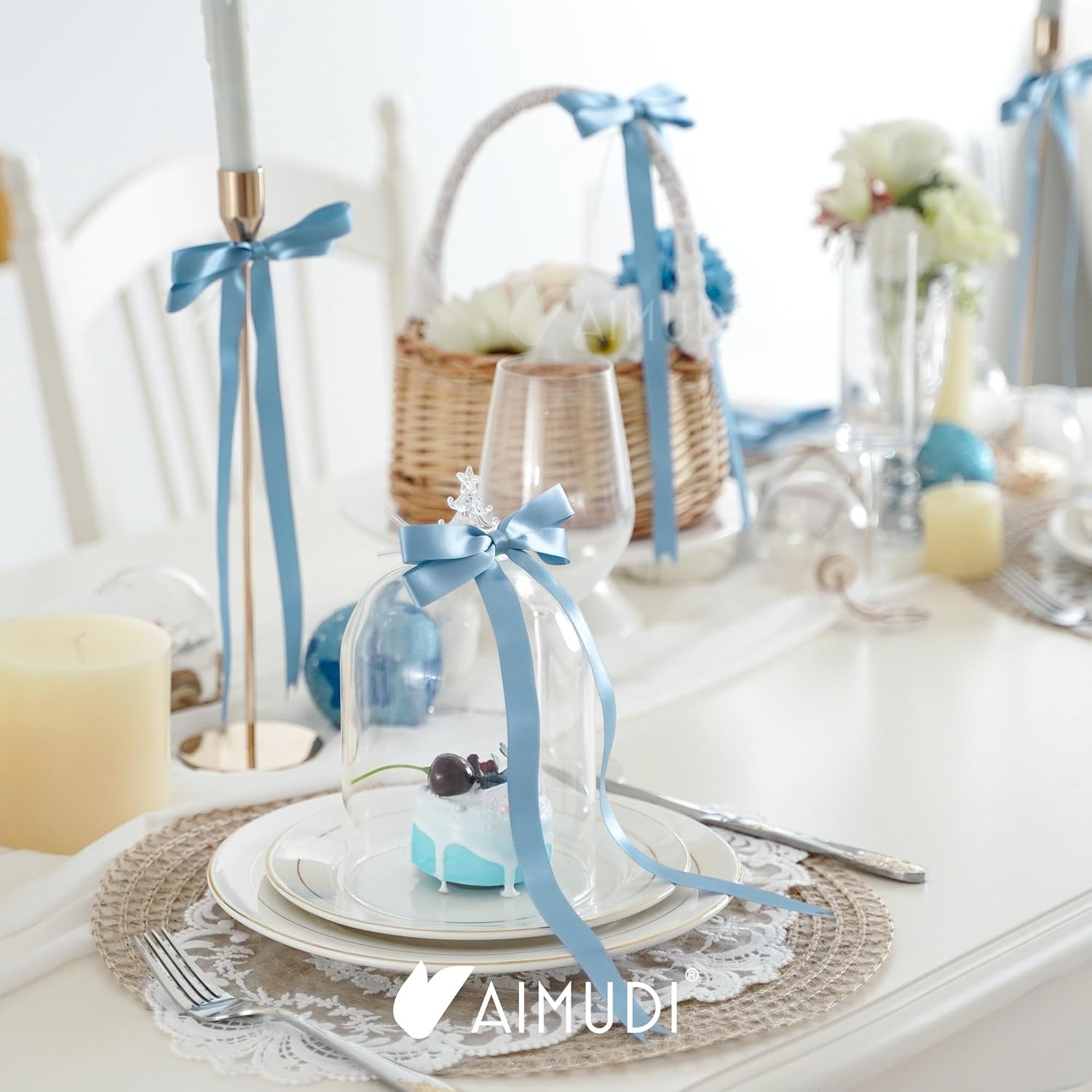 AIMUDI Dusty Blue Bows 5 × 10" Satin Bows for Gift Wrapping Twist Tie Bows Premade Ribbon Bows for Bouquets Invitations Baskets Crafts Wreaths Wedding Birthday Baby Shower Party Decorations, 36 PCs