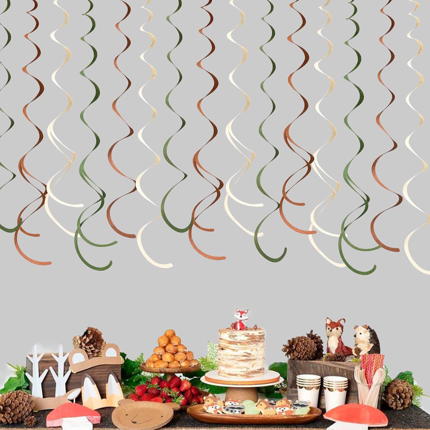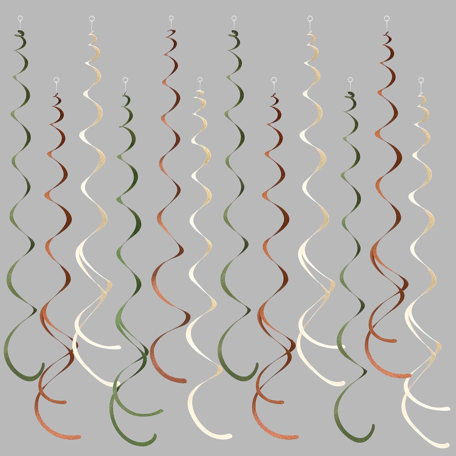 36 Pcs Jungle Hanging Swirl Decorations Sage Green Brown Beige Felt Swirl Streamer Spiral Ceiling Garland for Safari Jungle Woodland Wild One Birthday Neutral Baby Shower Party Decorations Supplies