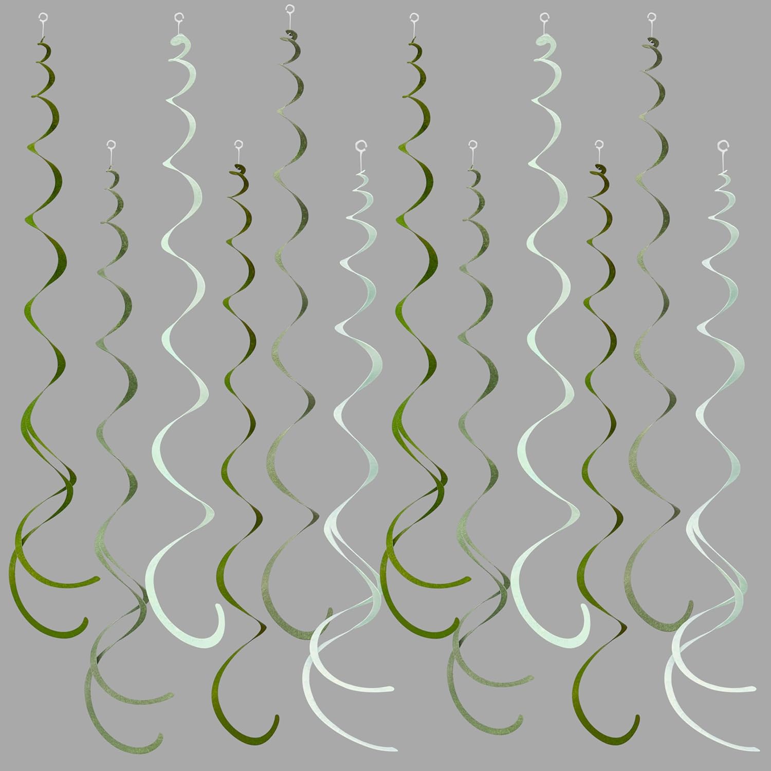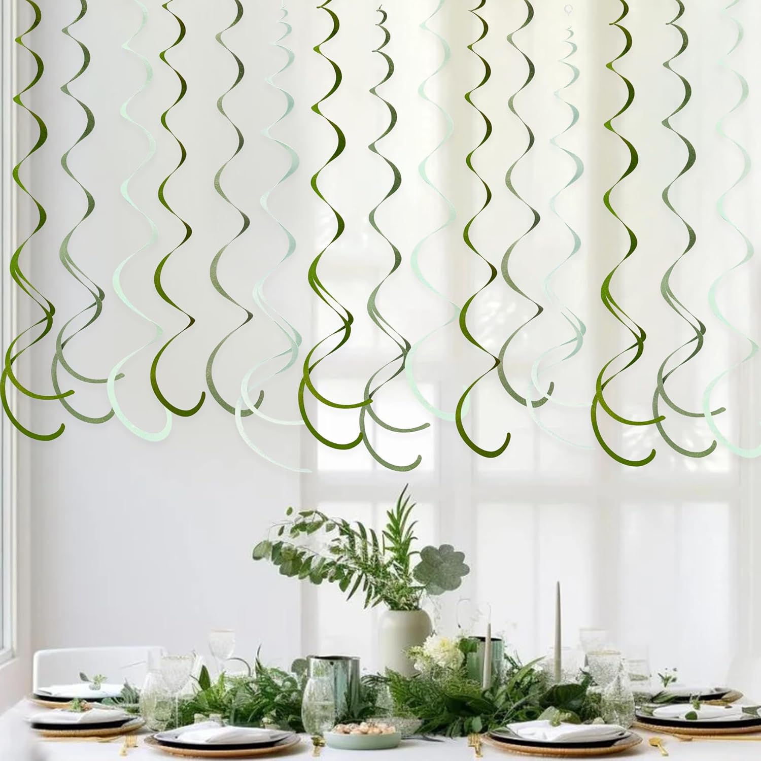36Pcs Olive Green Hanging Swirl Decorations Ombre Sage Green Felt Swirl Streamer Spiral Ceiling Garland for Neutral Baby Shower Birthday Wedding Engagement Safari Jungle Woodland Party Supplies