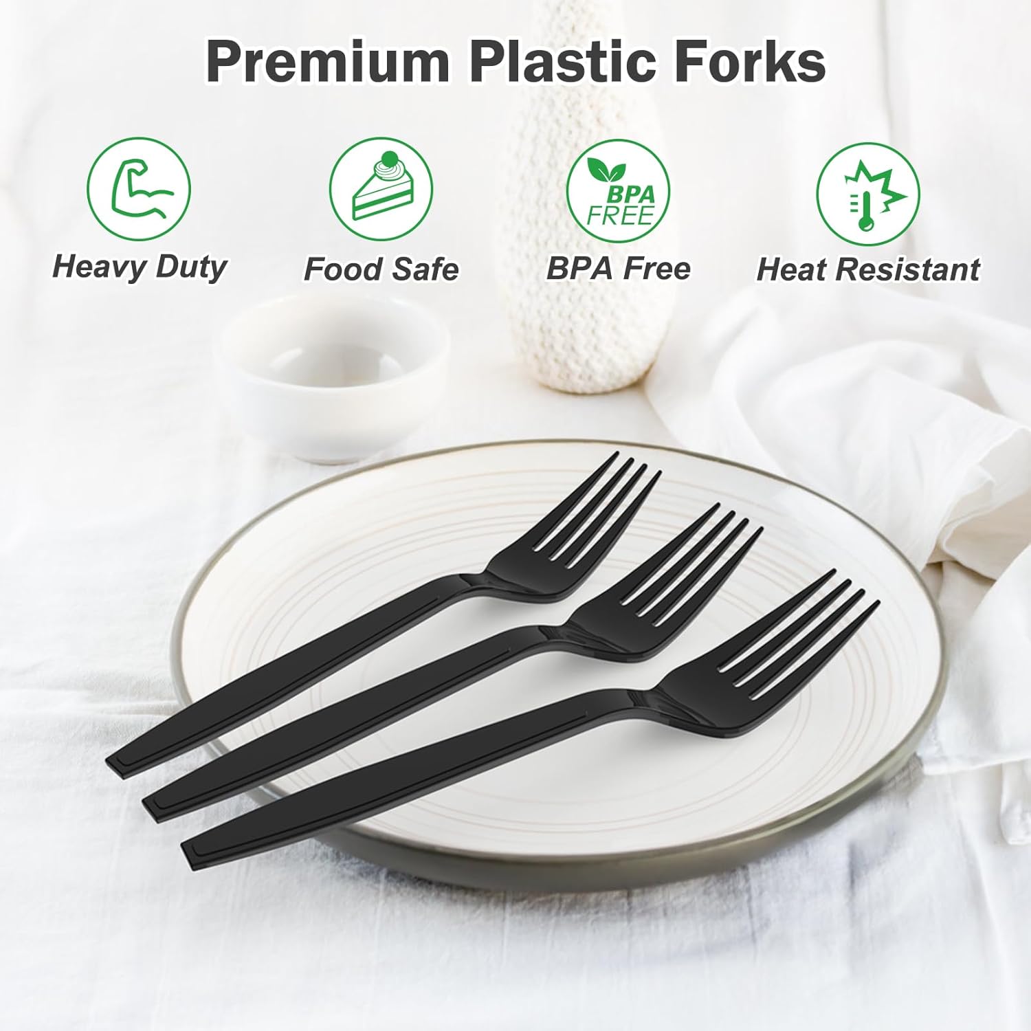 • 【Premium Material】: Dealusy black plastic forks heavy duty are made of food grade polystyrene, total BPA free and toxin free for your healthy meals.