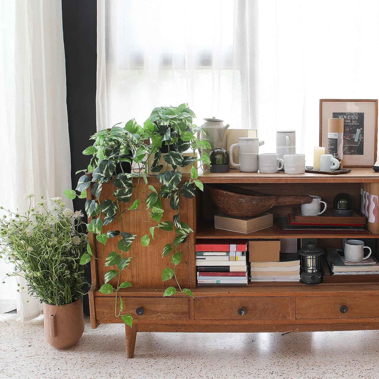 • Effortless Maintenance - Enjoy fresh-looking greenery all year round without any effort. These fake pothos plants require no sunlight, watering, or pruning—ideal for busy lifestyles or low-light areas like bathrooms, shelves, and offices.