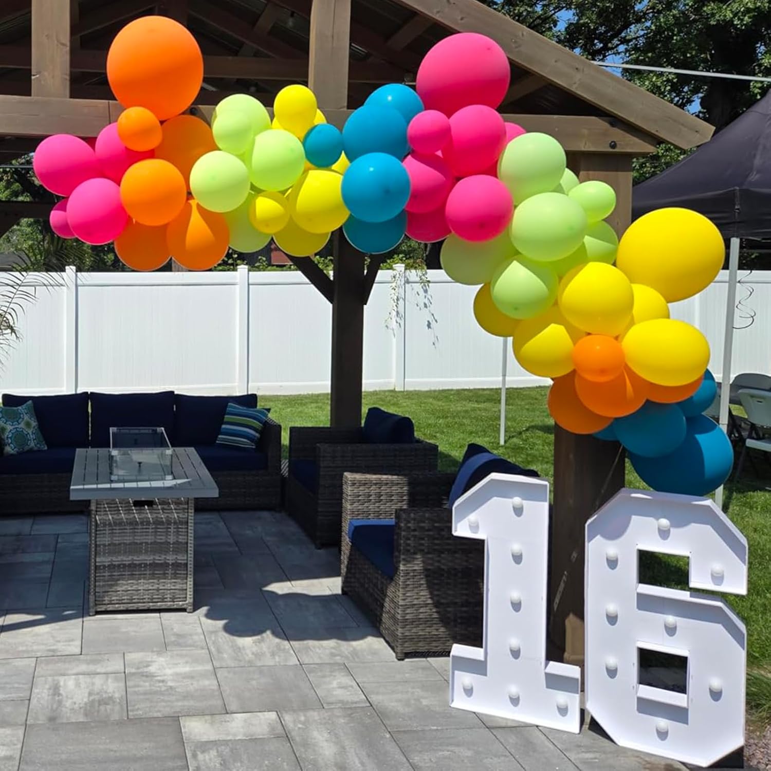 • 🦩 High Quality Materials: This colorful balloons is made of natural latex, and the neon pink and light green yellow balloons are thick and durable, which means they will not break easily and last longer. In addition, all neon balloons have been strictly tested to ensure that they are not only durable but also safe for children.
