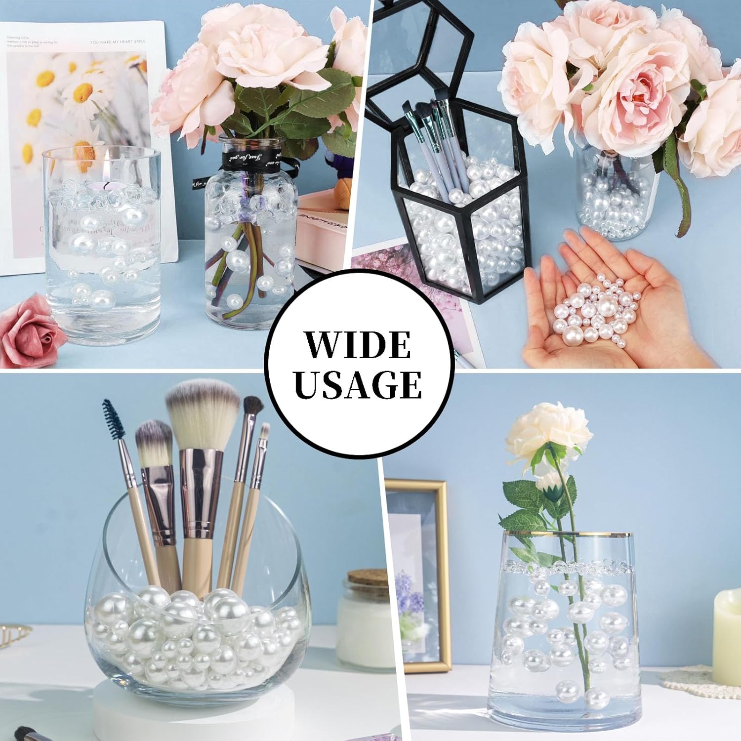 • 【Beads for Decoration】fake pearls are ideal as vase fillers, the pearl decor surprises your family, and friends, Vase Beads for centerpieces are a great romantic and simply elegant, decorate your floral arrangements, use Vase Beads for vases no hole as vase fillers, candle plate decorations, give you a sense of beauty and magnificence. decorative pearls perfect for wedding and family graduation bridal shower decorations; birthday, holiday, DIY Crafts.