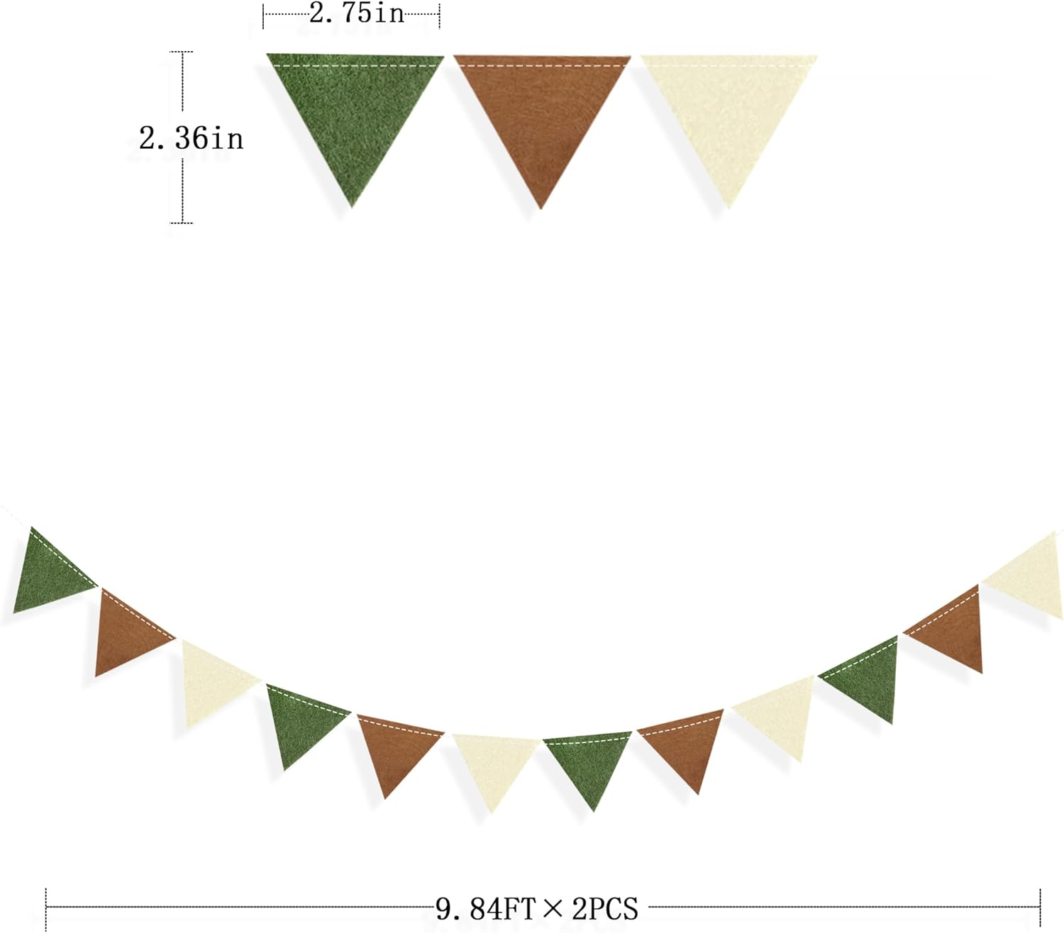 • Easy Assembly - Easy hanging and reusable.Perfect fit for safari jungle party decor.unroll and unwrap garland carefully. due to delicate nature of thread,may tangle.This sage green brown mini triangle pennant makes an attractive backdrop for videos and photos.