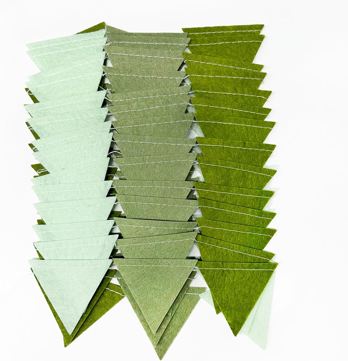 • Easy Assembly - Easy hanging and reusable.Perfect fit for olive green party decor.unroll and unwrap garland carefully. due to delicate nature of thread,may tangle.This ombre sage green mini triangle pennant makes an attractive backdrop for videos and photos.