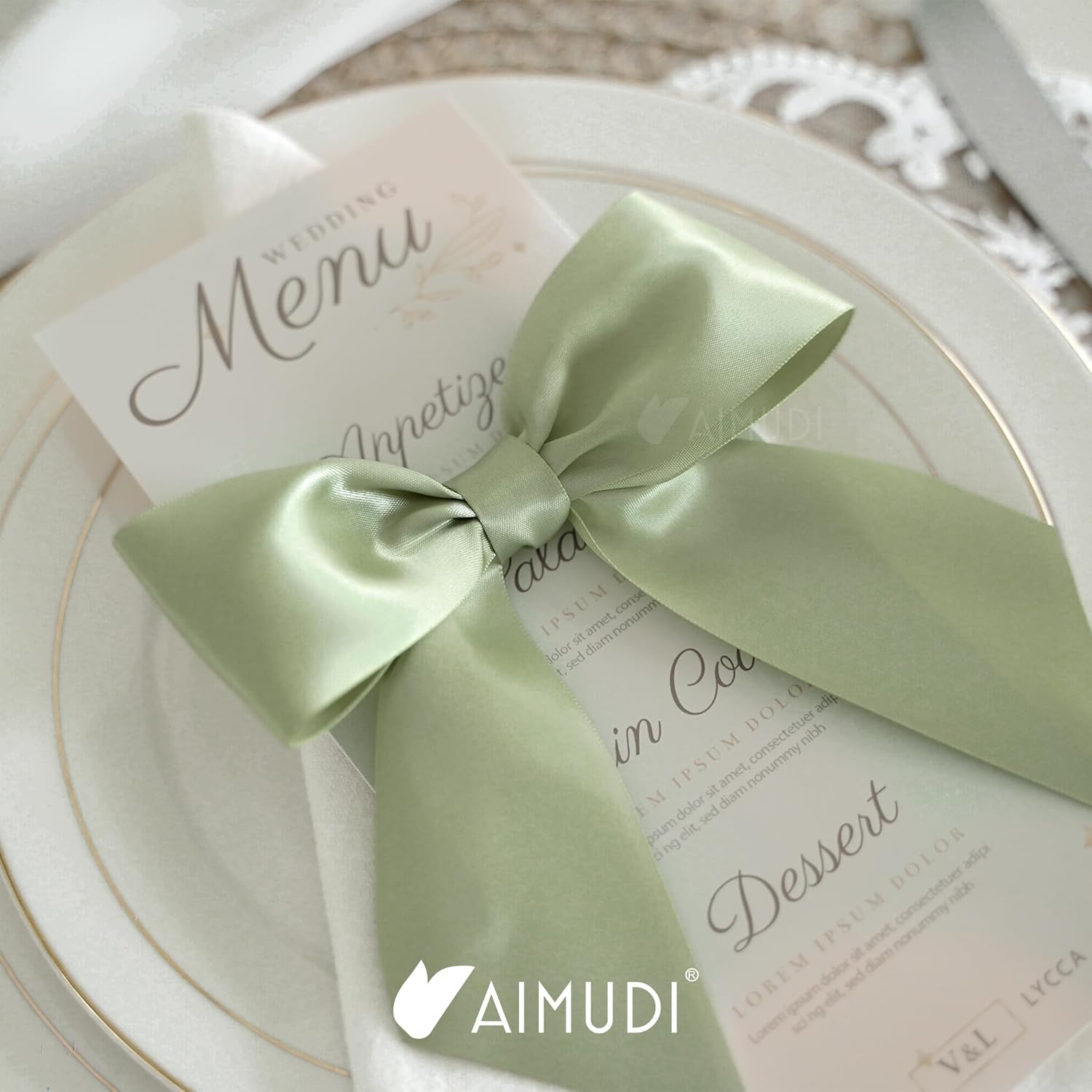 AIMUDI Sage Green Satin Bows 5.5" Bows for Gift Wrapping Satin Twist Tie Bows Premade Ribbon Bows for Treat Bags Invitations Baskets Wreaths Crafts Wedding Birthday Baby Shower Decorations, 24 PCs