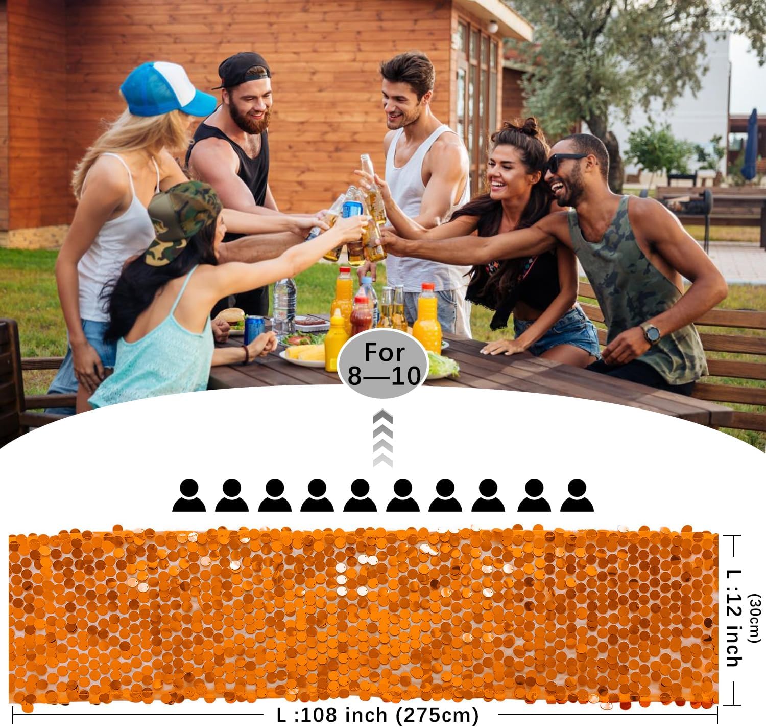 • Size: The 12" x 108" sequin table runner is suitable for tables that can accommodate 8-10 people. Great ideal for wedding table decorations for the reception.