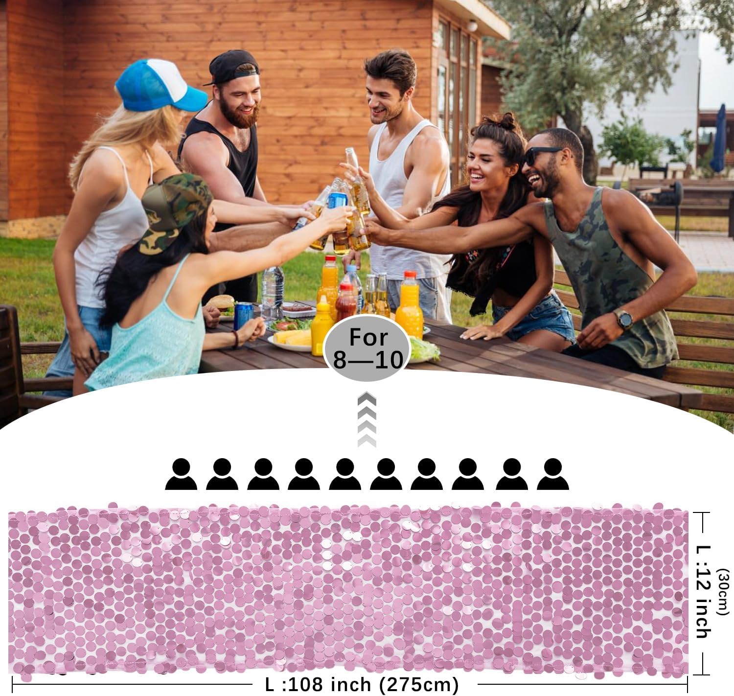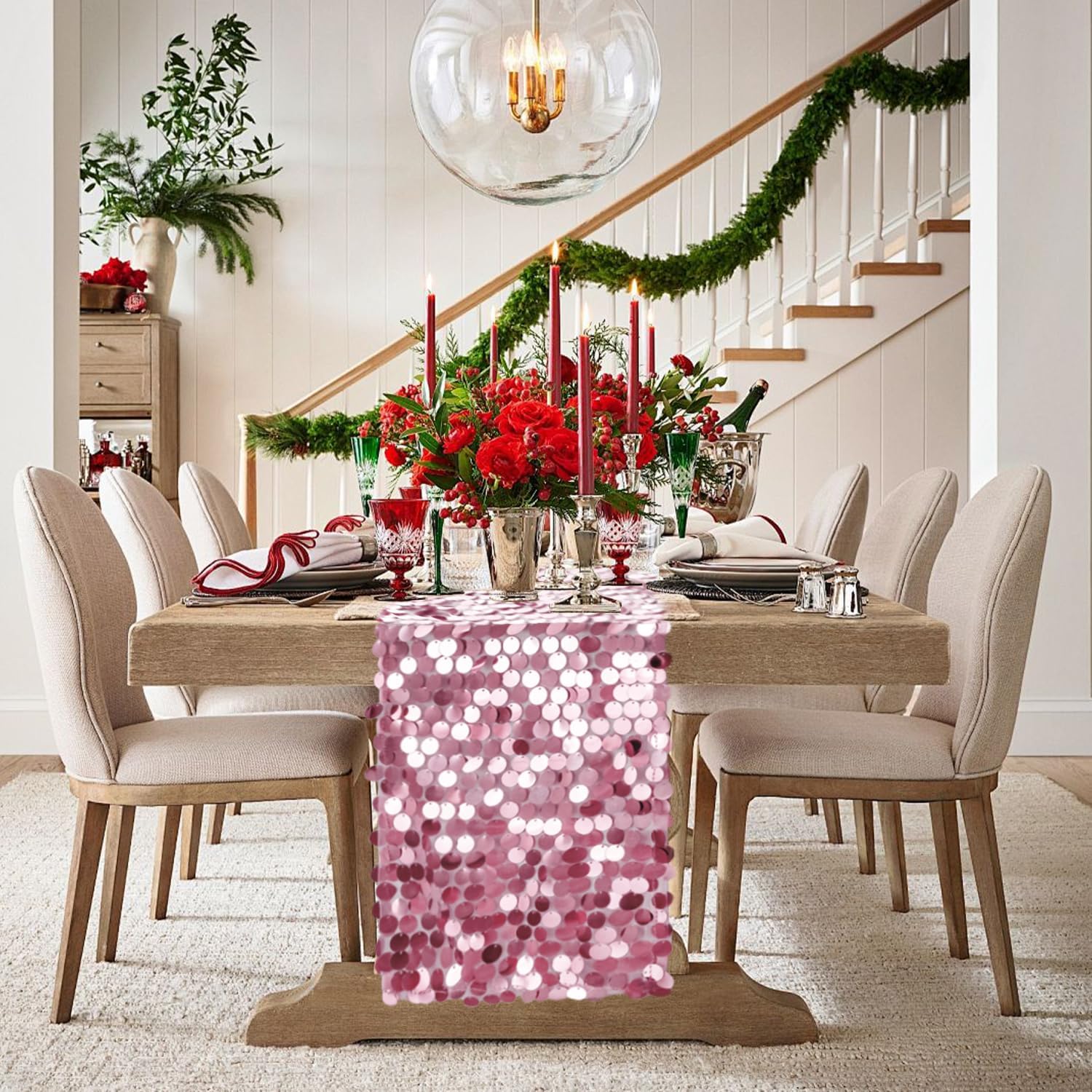 VHH Sequin Table Runner 12 x 108 inches Pink Table Runner, Glitter Runner for Party Wedding Birthday, Party Spring Easter Rustic, Birthday Supplies Decorations (1 Pack).