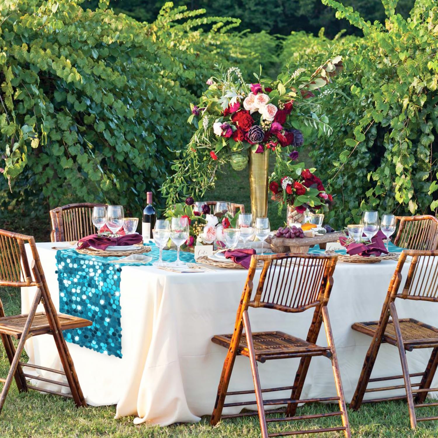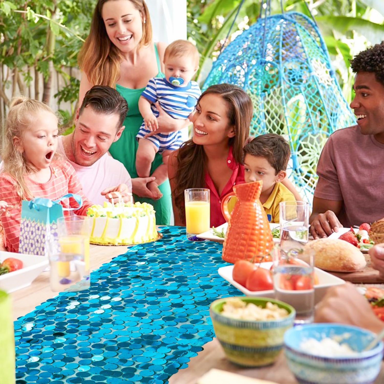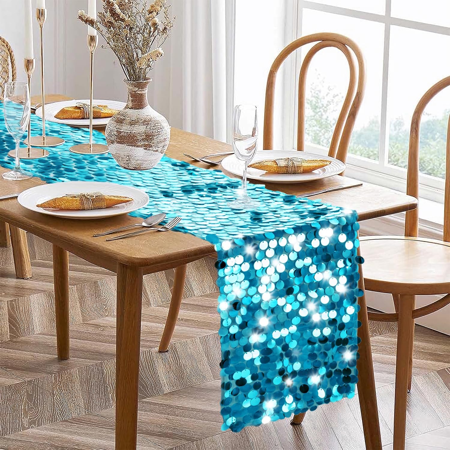 • What You Get: The package includes 1 turquoise sequin table runner.