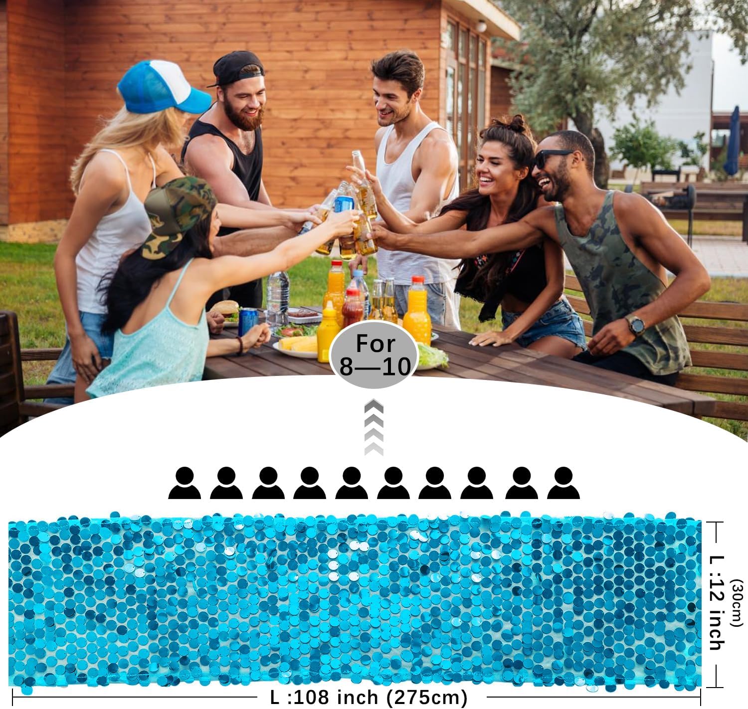 • Size: The 12" x 108" sequin table runner is suitable for tables that can accommodate 8-10 people. Great ideal for wedding table decorations for the reception.