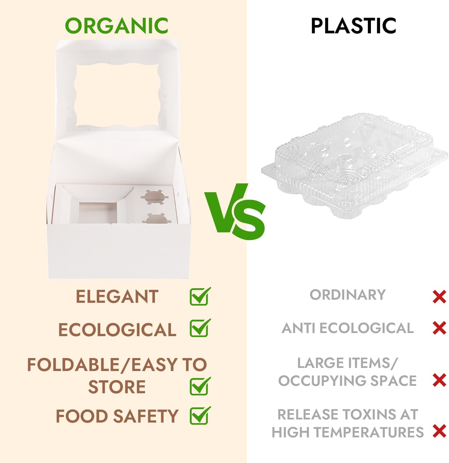 • Clear and Durable Design:Perfect for showcasing and protecting your cupcakes, these clear cupcake boxes are made from sturdy plastic and quality cardboard. Ensure your treats stay fresh and presentable.The smooth white exterior of the bento cake and cupcake box not only gives it a sleek look, but also makes it versatile.