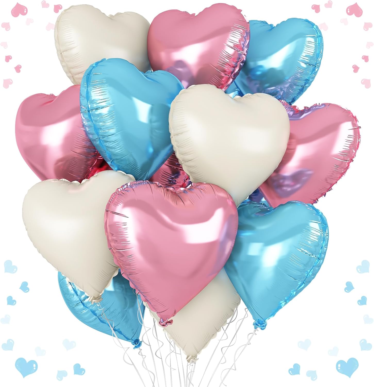 • Charming Pink Blue Heart Balloons: Elevate your celebration with our set of 12 heart-shaped nude white blue balloons, each measuring 18 inches. Accompanied by a ribbon, these balloons are ideal for creating a festive and loving atmosphere at any special event.