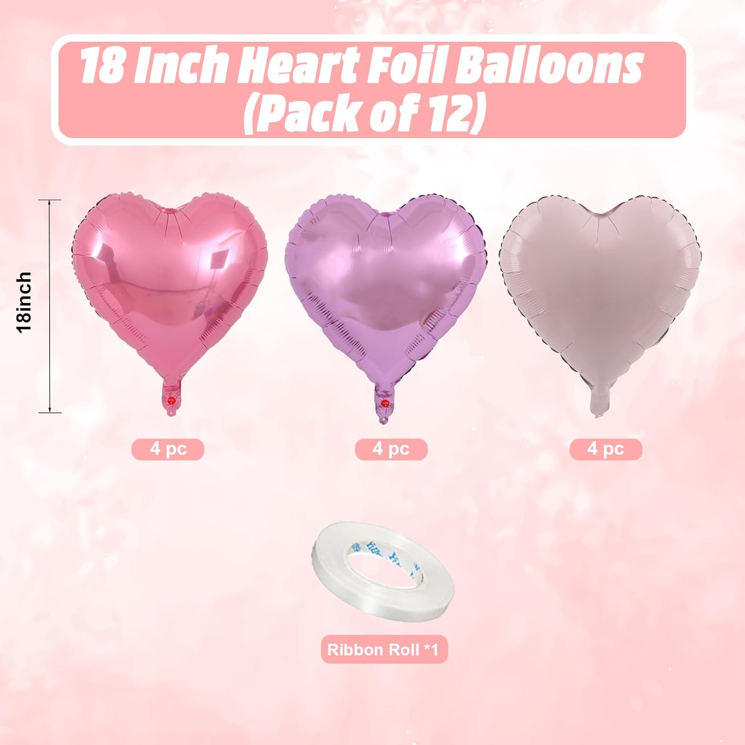 • Charming Pink Purple Heart Balloons: Elevate your celebration with our set of 12 heart-shaped light purple and pink balloons, each measuring 18 inches. Accompanied by a ribbon, these balloons are ideal for creating a festive and loving atmosphere at any special event.
