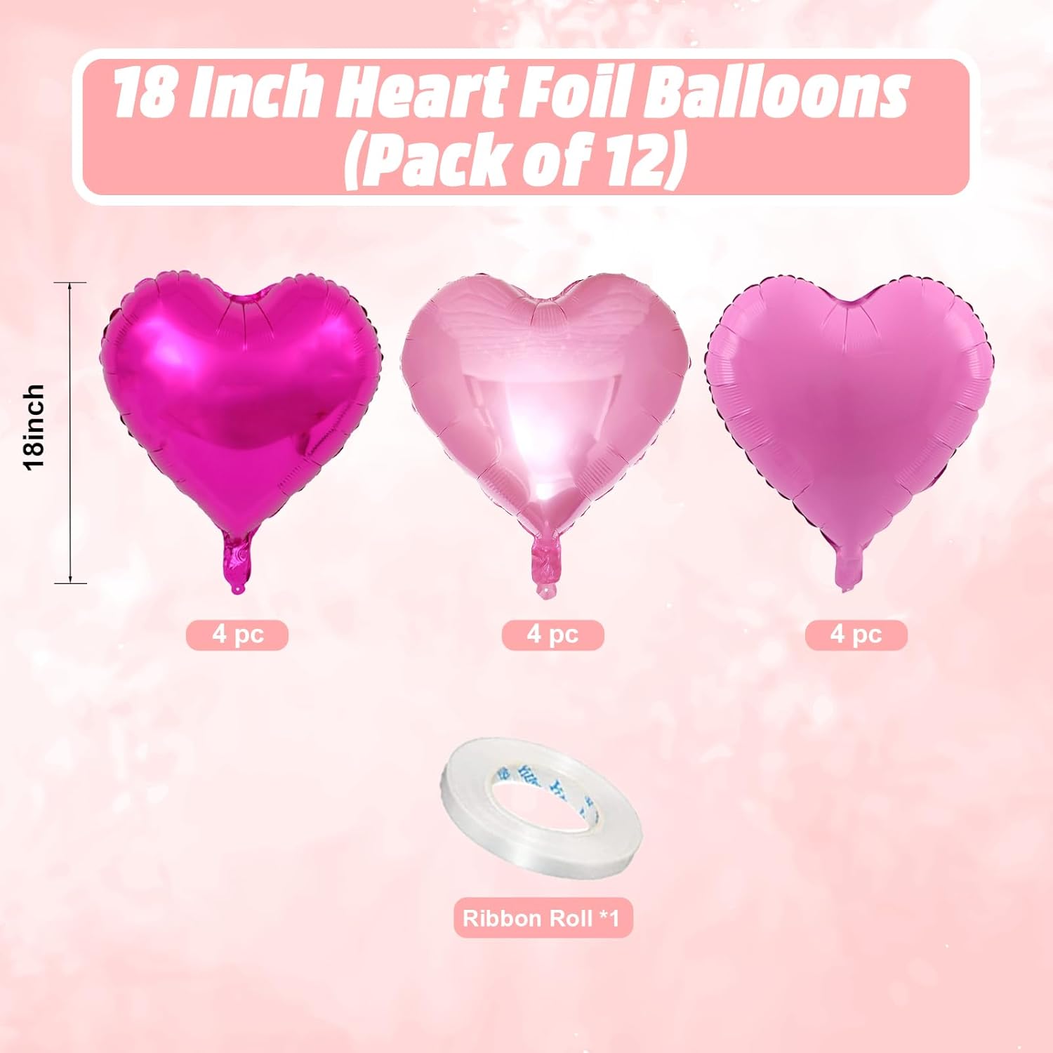 • Charming Pink Heart Balloons: Elevate your celebration with our set of 12 heart-shaped hot pink balloons, each measuring 18 inches. Accompanied by a ribbon, these balloons are ideal for creating a festive and loving atmosphere at any special event.