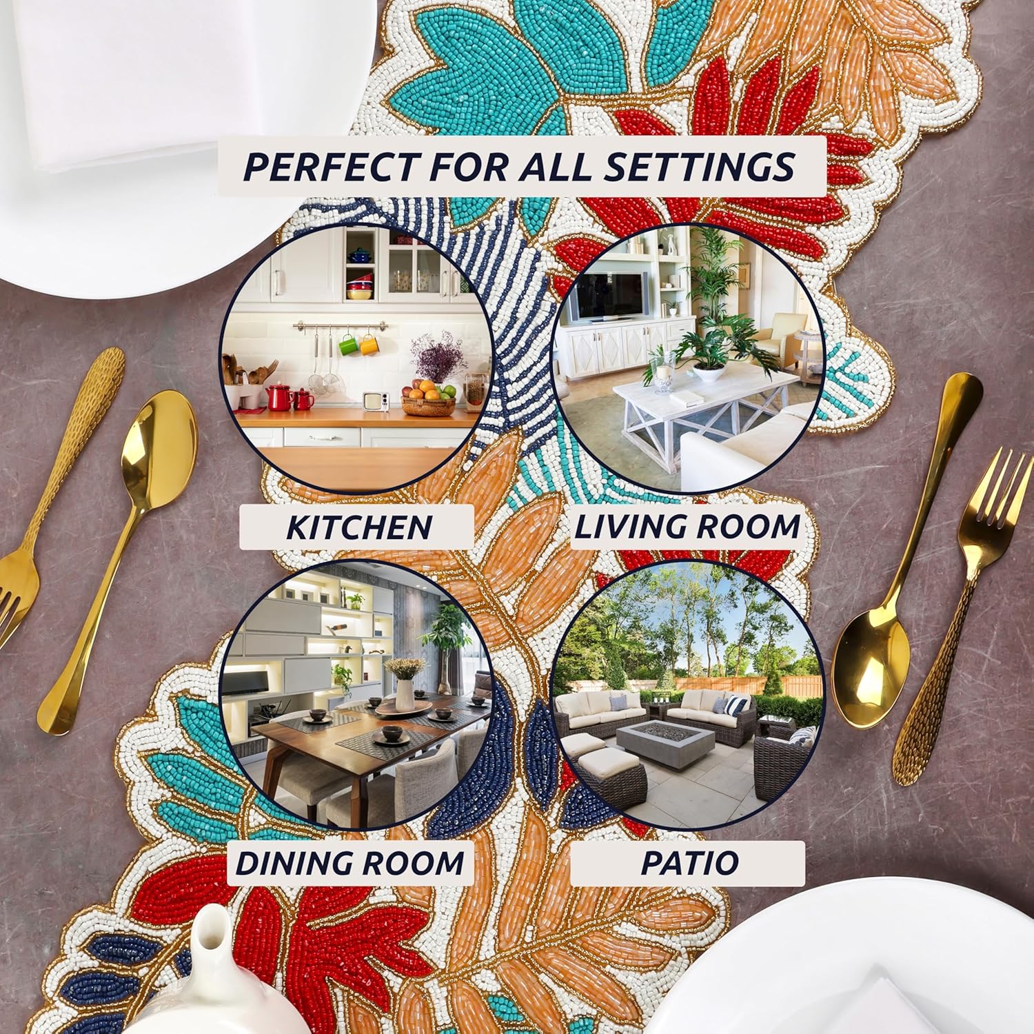 • ✅ Elevates Your Table Setting : Transforms plain tables into a stylish centerpiece - protects surfaces while enhancing your décor with a unique, multicolor leaf design.