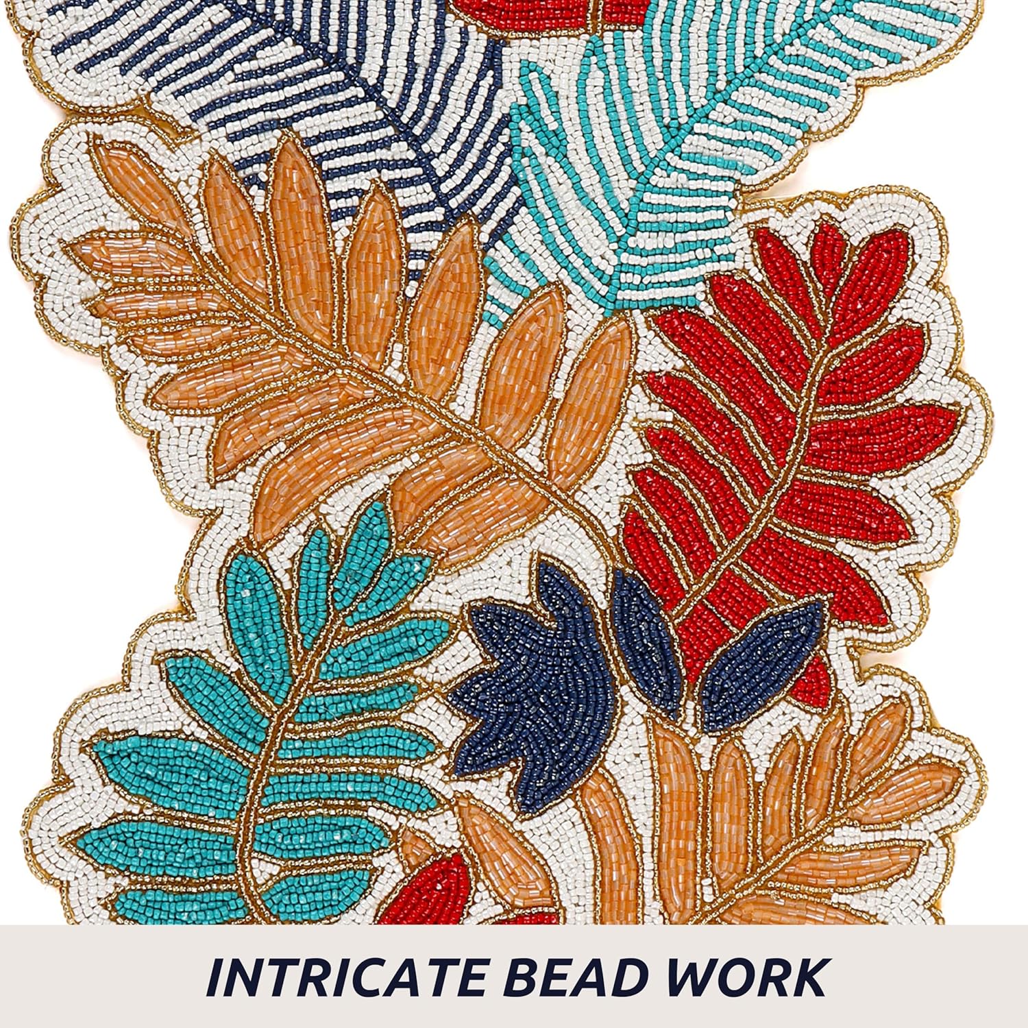 Beaded Table Runner 13x36 - Handmade Leaf Design, Glass Beads & Polyester Backing - Decorative Dining Table Centerpiece for Weddings, Parties, Thanksgiving, Christmas & Everyday Décor - CLEENTABLE