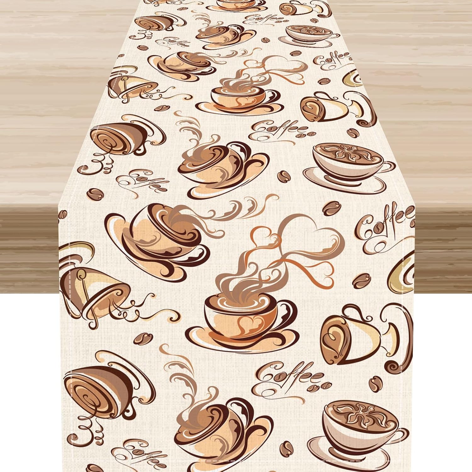 Coffee Time Table Runner, Farmhouse Retro Coffee Cup Tea Party Cafe Table Center Decor for Home Kitchen Dining Patio Holiday Party Indoor Outdoor Table Decorations,13"x72" Inch