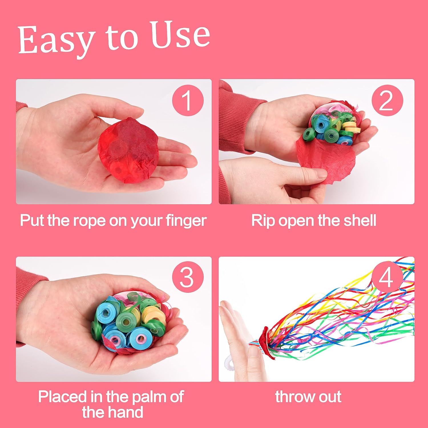 • How to use - Put the looped handle above the ribbons on your finger, then tear the wrapping paper at the bottom and throw them at a forward and upward angle, the more ribbons you throw at the same time the better the result. You can achieve a shocking effect and an instant lift in atmosphere