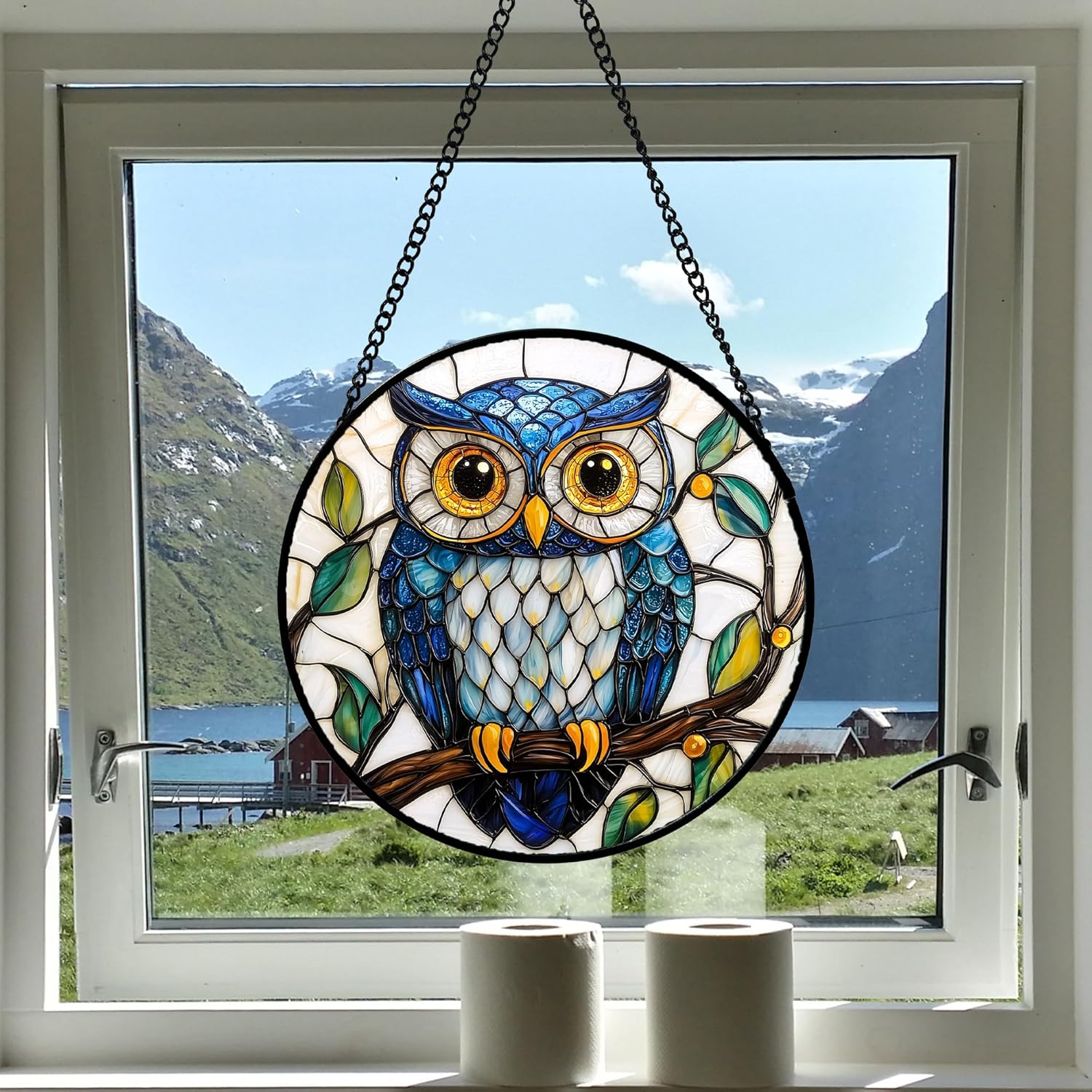 • Stained Glass Kit : This beautifully sun catcher is made of high quality diamond glass UV printed with metal frame and chain, ready to hang on windows, doors, porches, walls.This colorful glass decor perfect for home decoration or as a creative gift for neighbors.