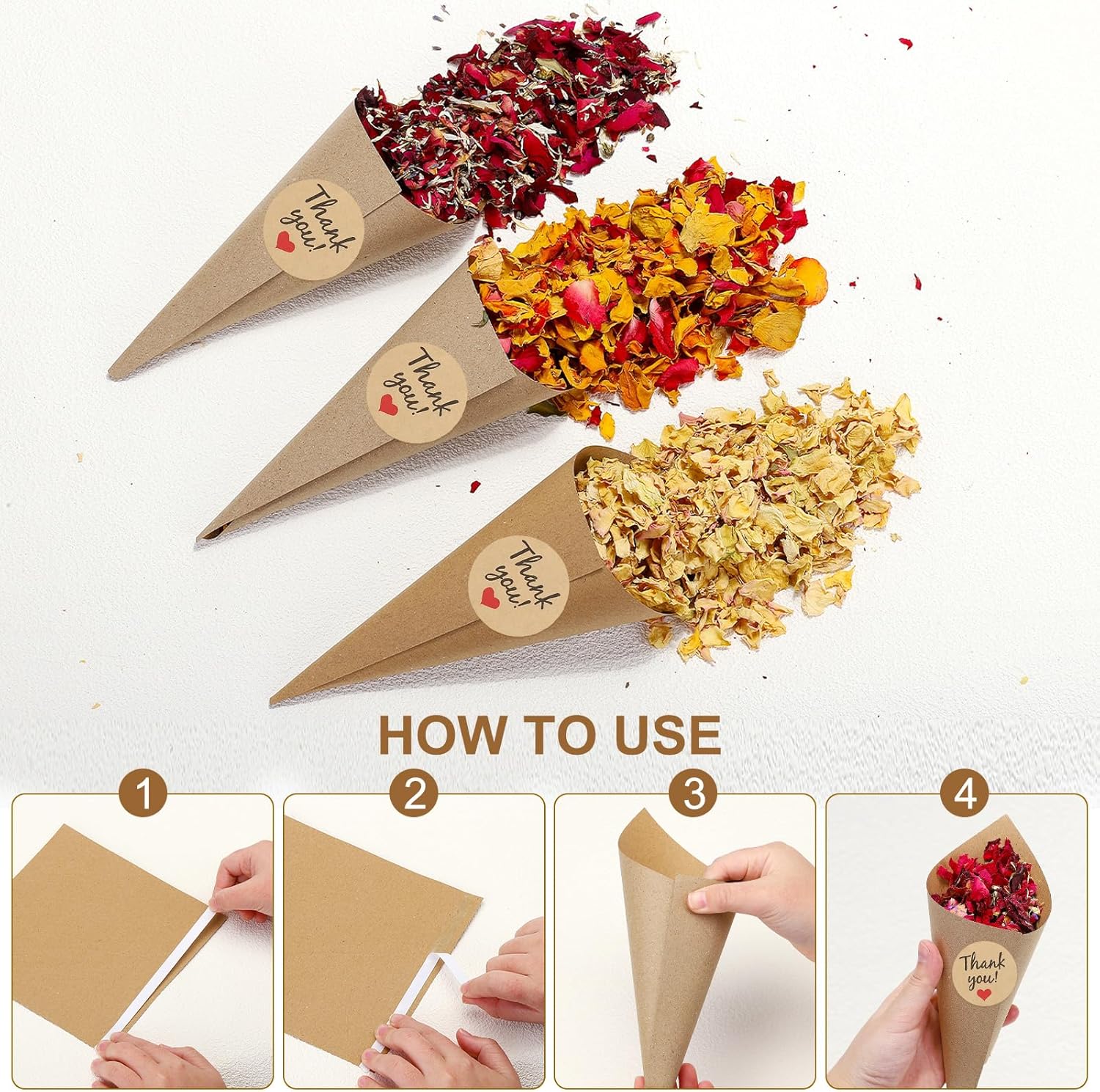 • Durable Material - The confetti cones and paper cone boxes are made of paper material, have no odor, are comfortable to touch, light quality, and do not take up extra space. The dried petals are made of natural rose mix, you can smell the fragrance of different natural rose mixes, giving you a romantic experience.