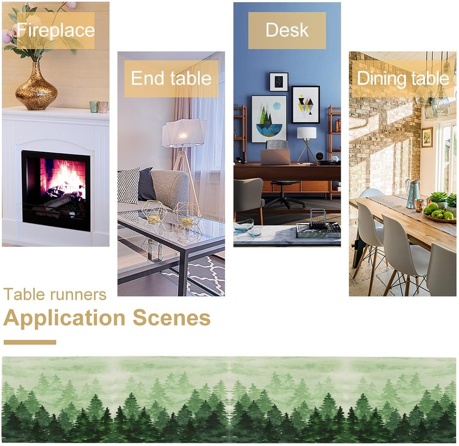 Foggy Forest Table Runner,Watercolor Wreen Misty Forest Landscape Table Runner for Kitchen Dining Table Home Party Decoration 13x72 Inch