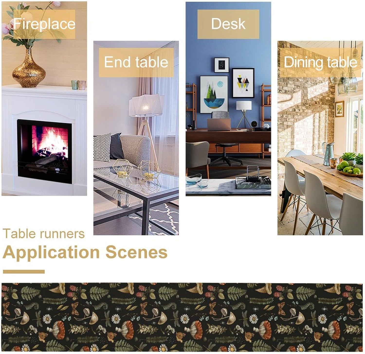 Mushroom Table Runner,Retro Forest Plant Table Runner for Kitchen Dining Table Home Party Decoration 13x72 Inch