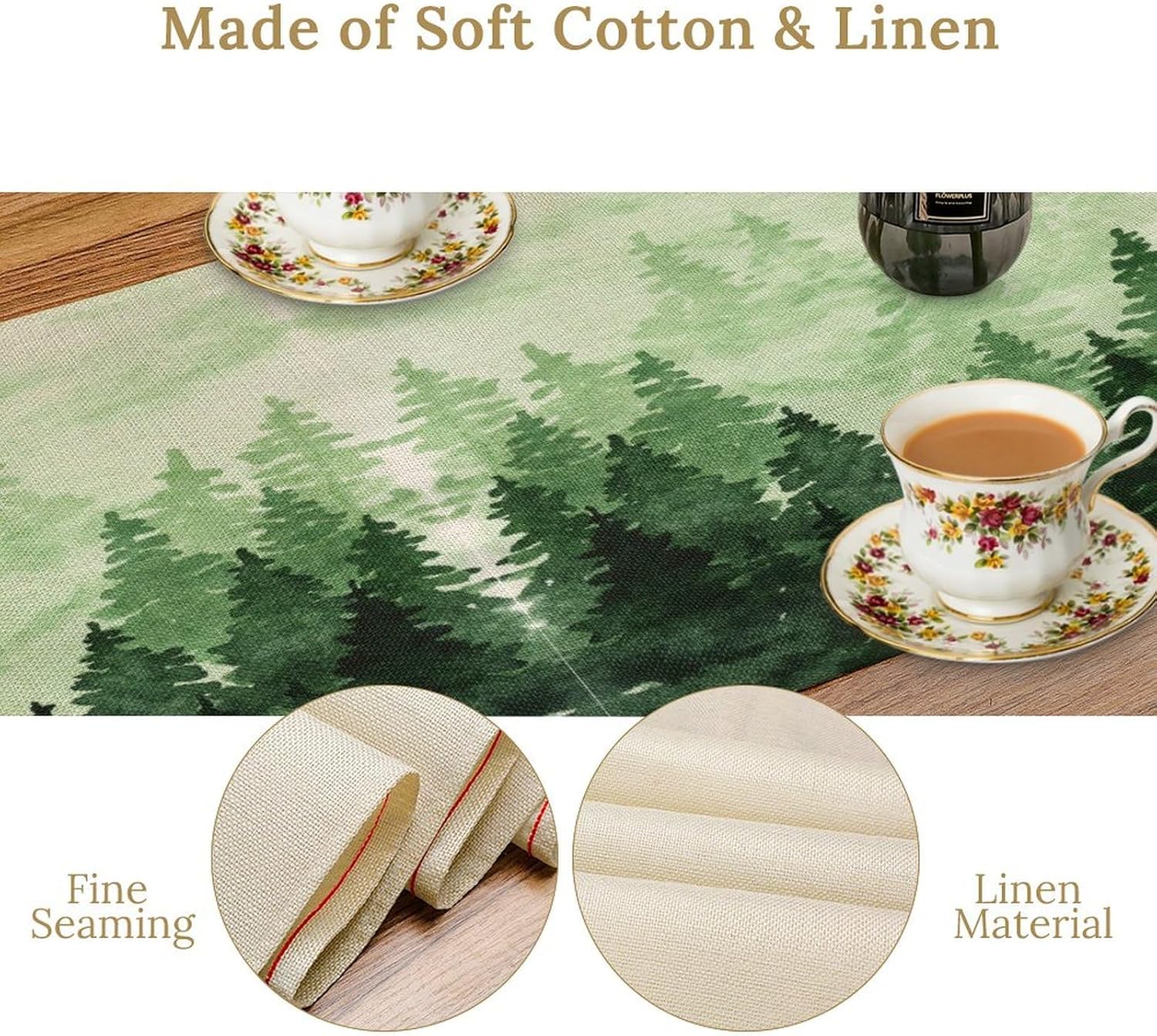 Foggy Forest Table Runner,Watercolor Wreen Misty Forest Landscape Table Runner for Kitchen Dining Table Home Party Decoration 13x120 Inch