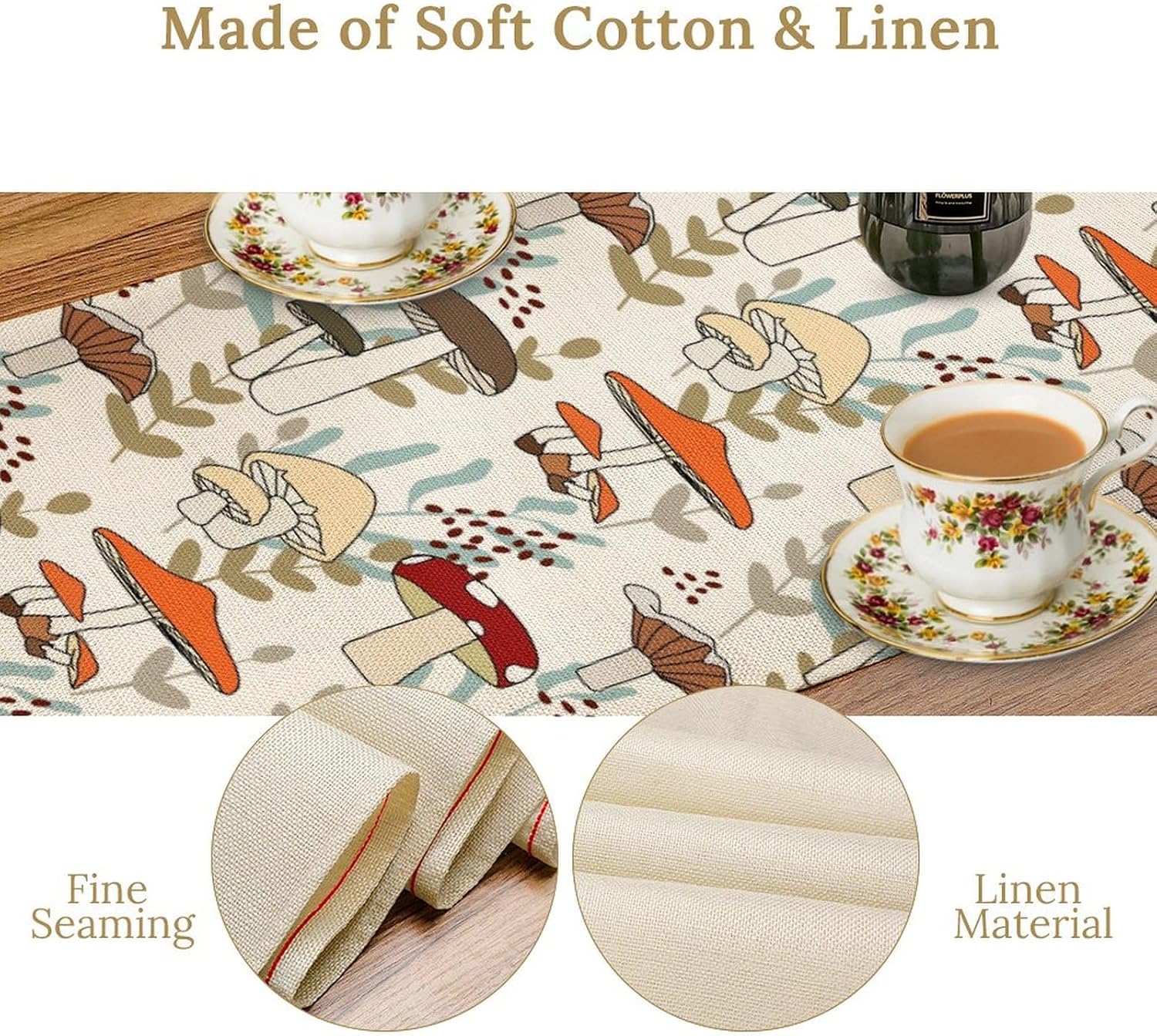 Mushroom Table Runner, Vintage Nature Plant Table Runner for Farmhouse Kitchen Dining Table Decoration for Home Party Decor 13x90 Inch