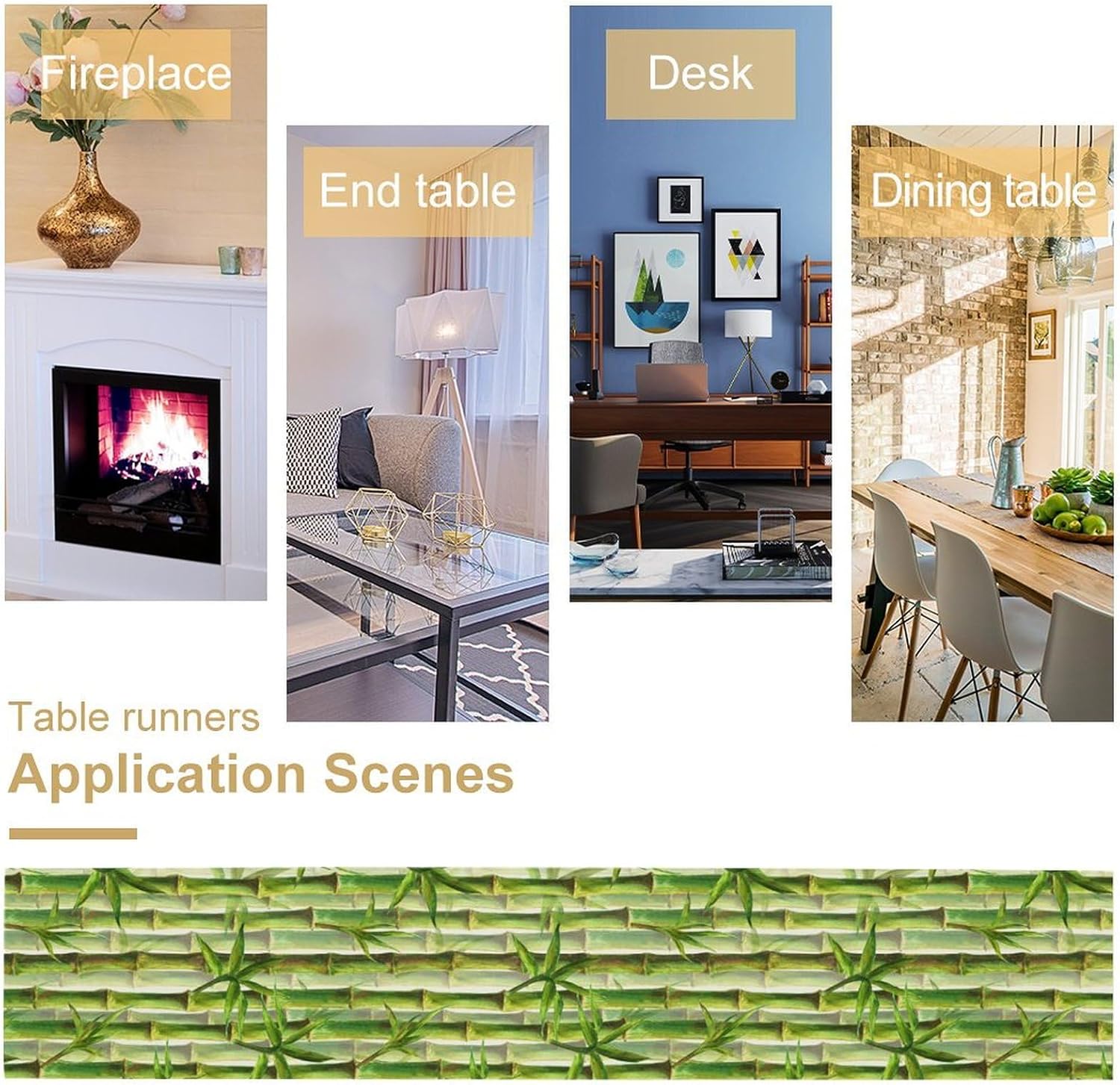 Bamboo Table Runner,Green Plant Print Table Runner for Kitchen Dining Table Home Party Decoration 13x90 Inch