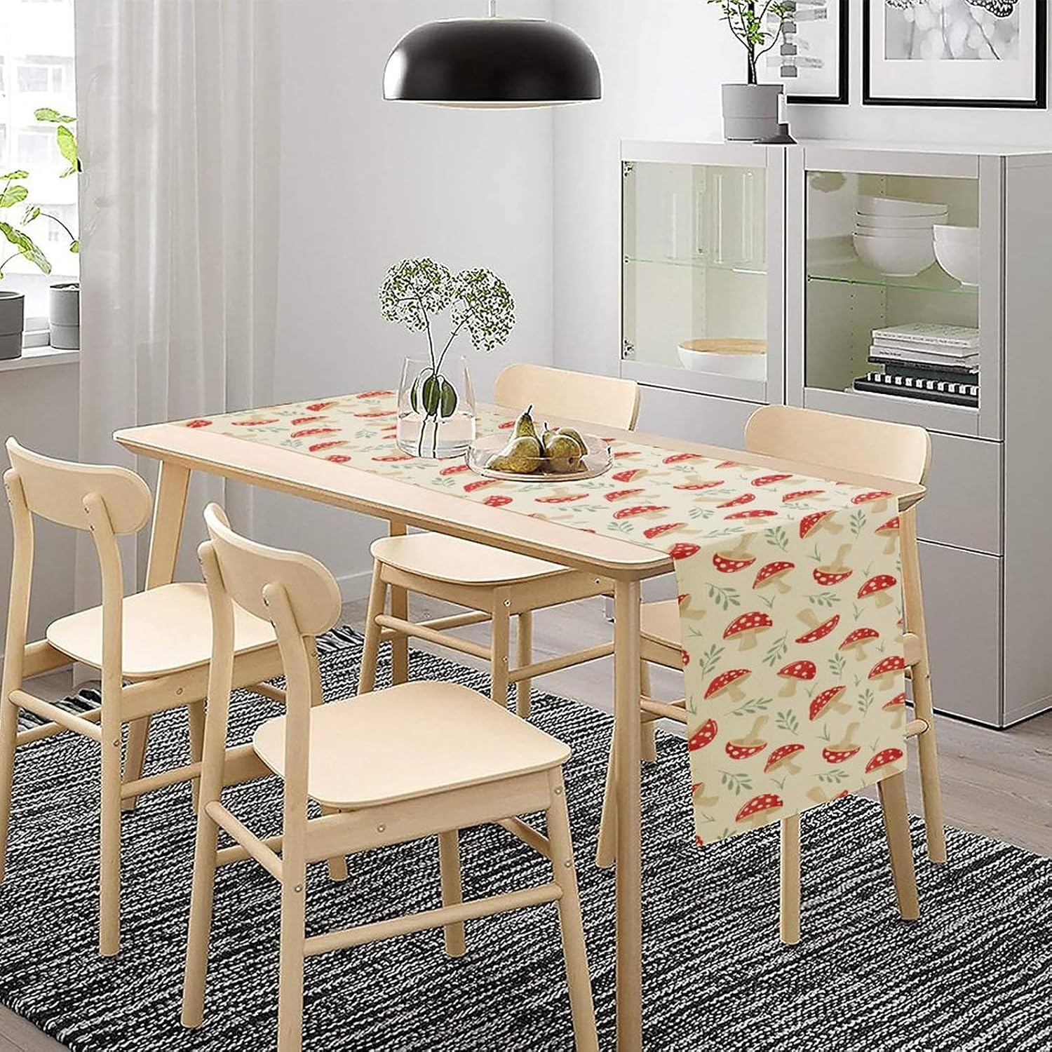 Mushroom Table Runner,Vintage Plant Print Table Runner for Kitchen Dining Table Home Party Decoration 13x72 Inch