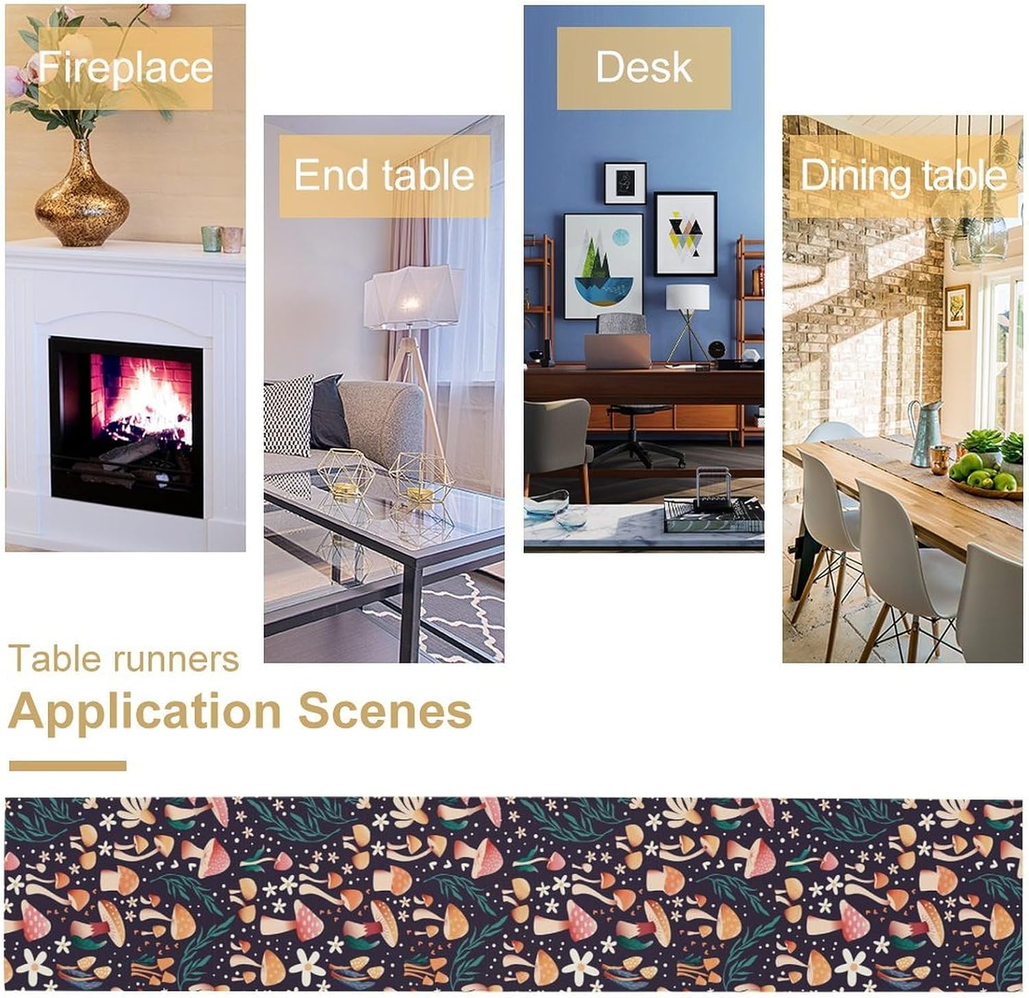 Mushroom Table Runner,Retro Forest Plant Table Cloth Farmhouse Kitchen Dining Table Decoration for Home Party Decor 13x60 Inch