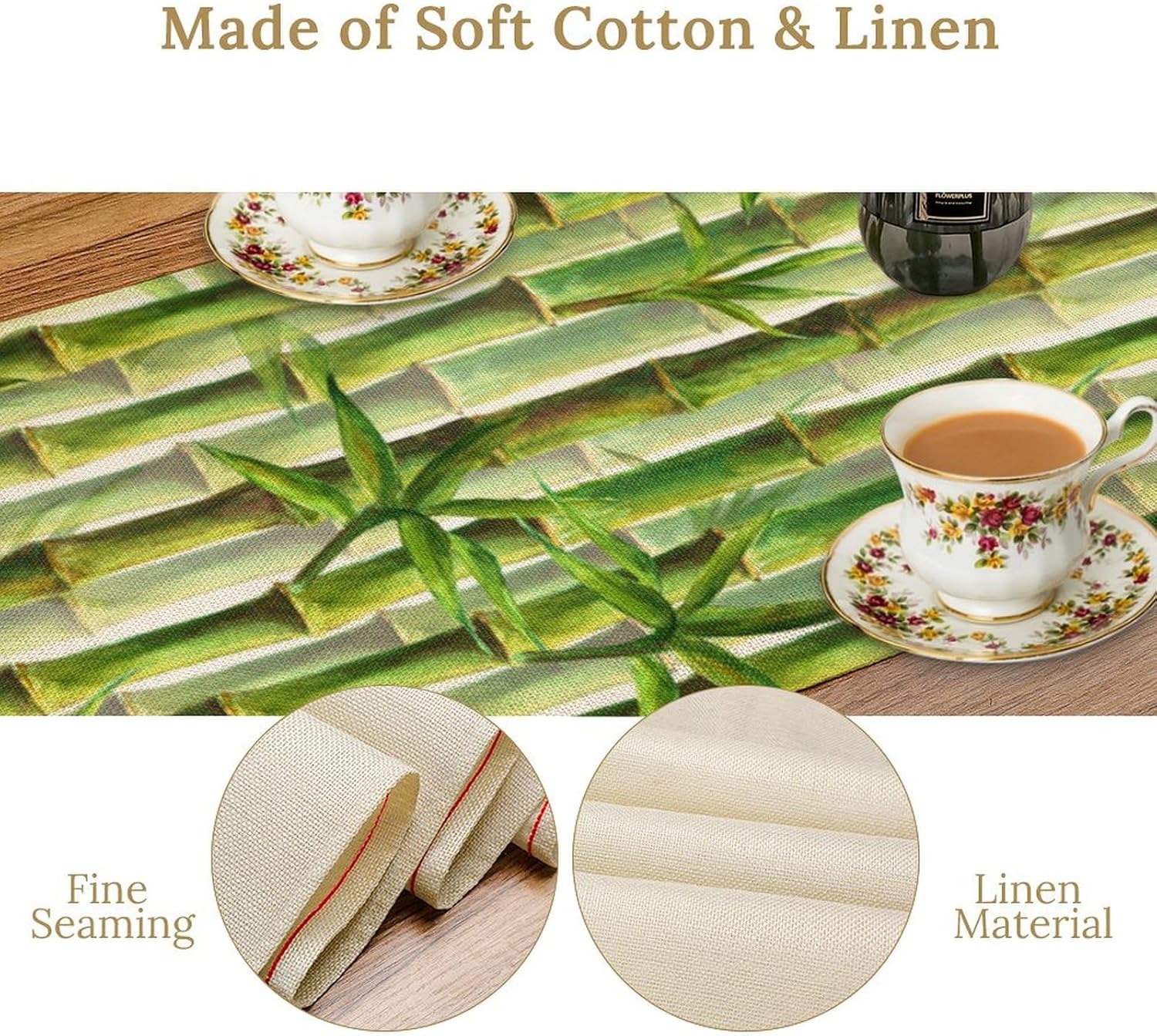 Bamboo Table Runner,Green Plant Print Table Runner for Kitchen Dining Table Home Party Decoration 13x36 Inch