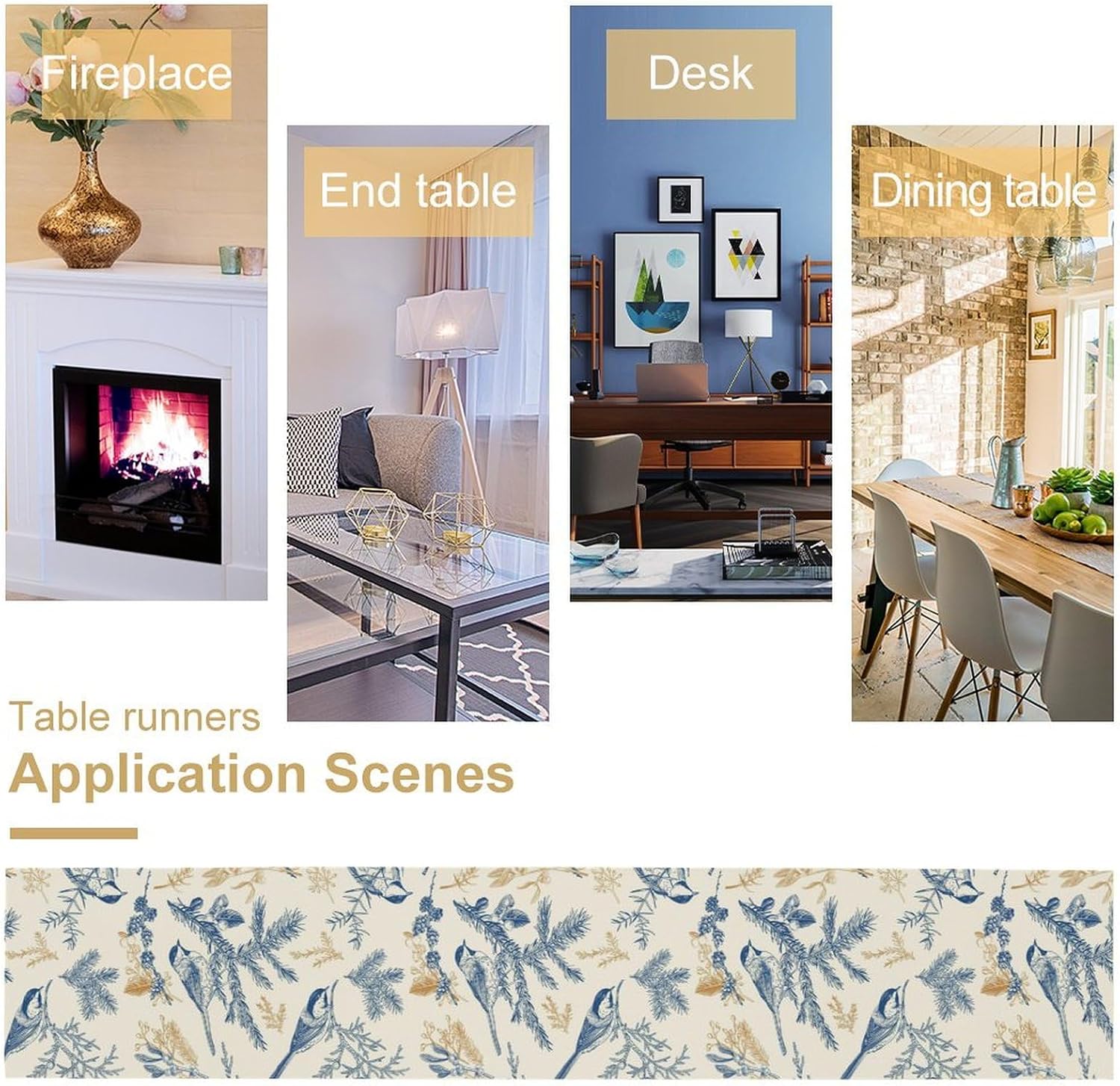 Floral Table Runner,Sketch Birds and Flowers Summer Table Runner Kitchen Dining Table Decoration for Home Party Decor 13x108 Inch