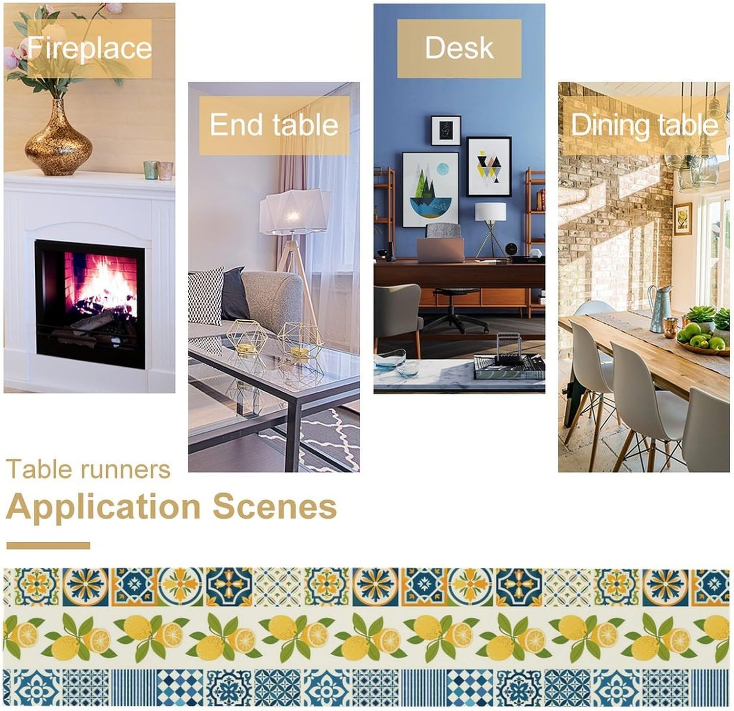 Lemon Table Runner,Watercolor Blue Fruits Green Leaves Print Table Cloth Kitchen Dining Table Home Party Decoration 13x108 Inch