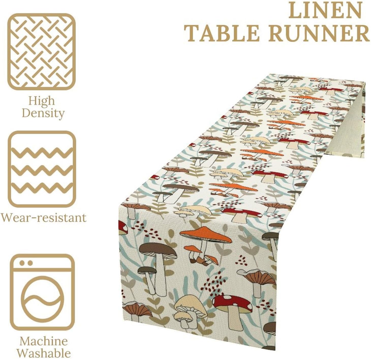 Mushroom Table Runner, Vintage Nature Plant Table Runner for Farmhouse Kitchen Dining Table Decoration for Home Party Decor 13x60 Inch