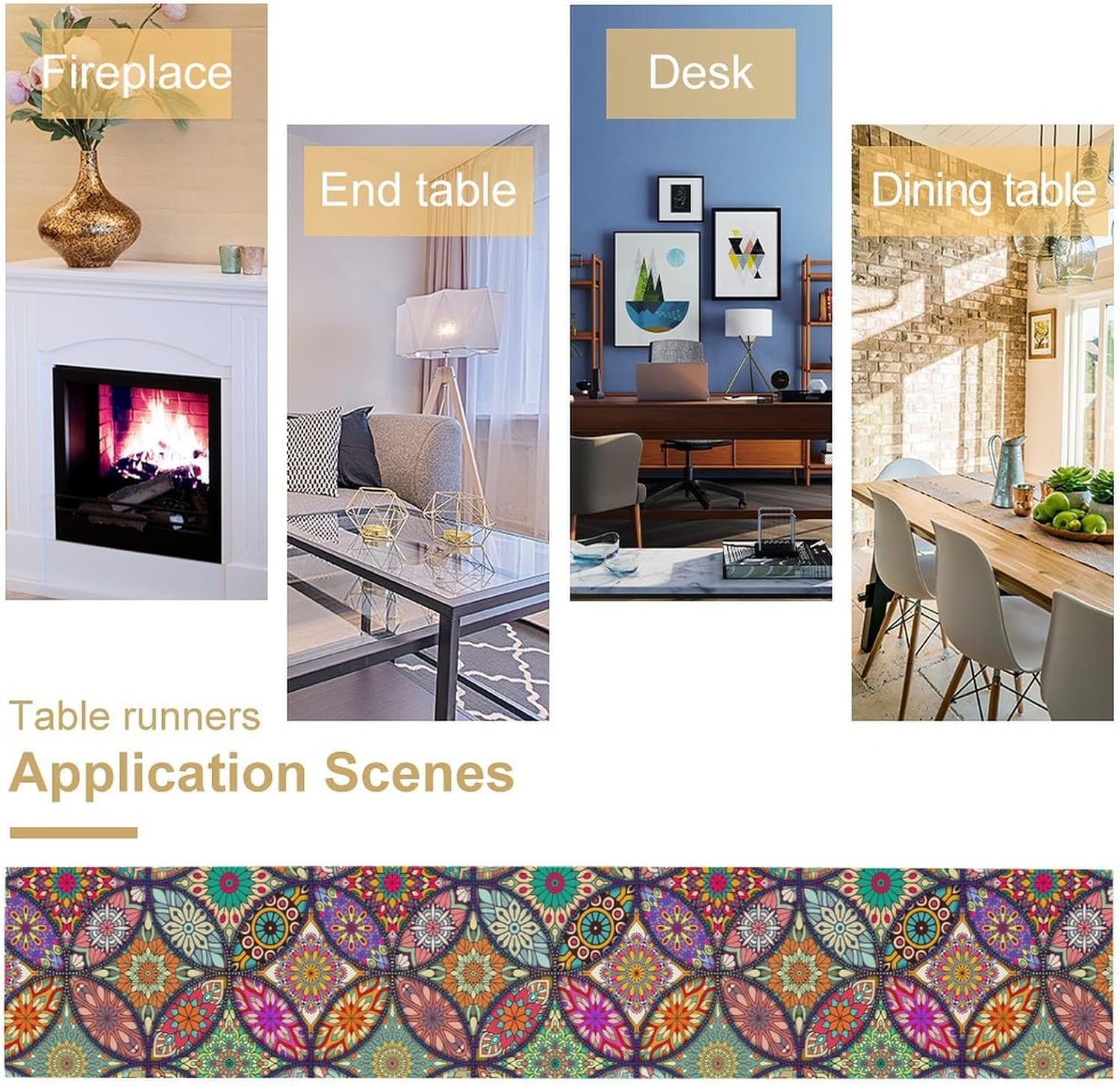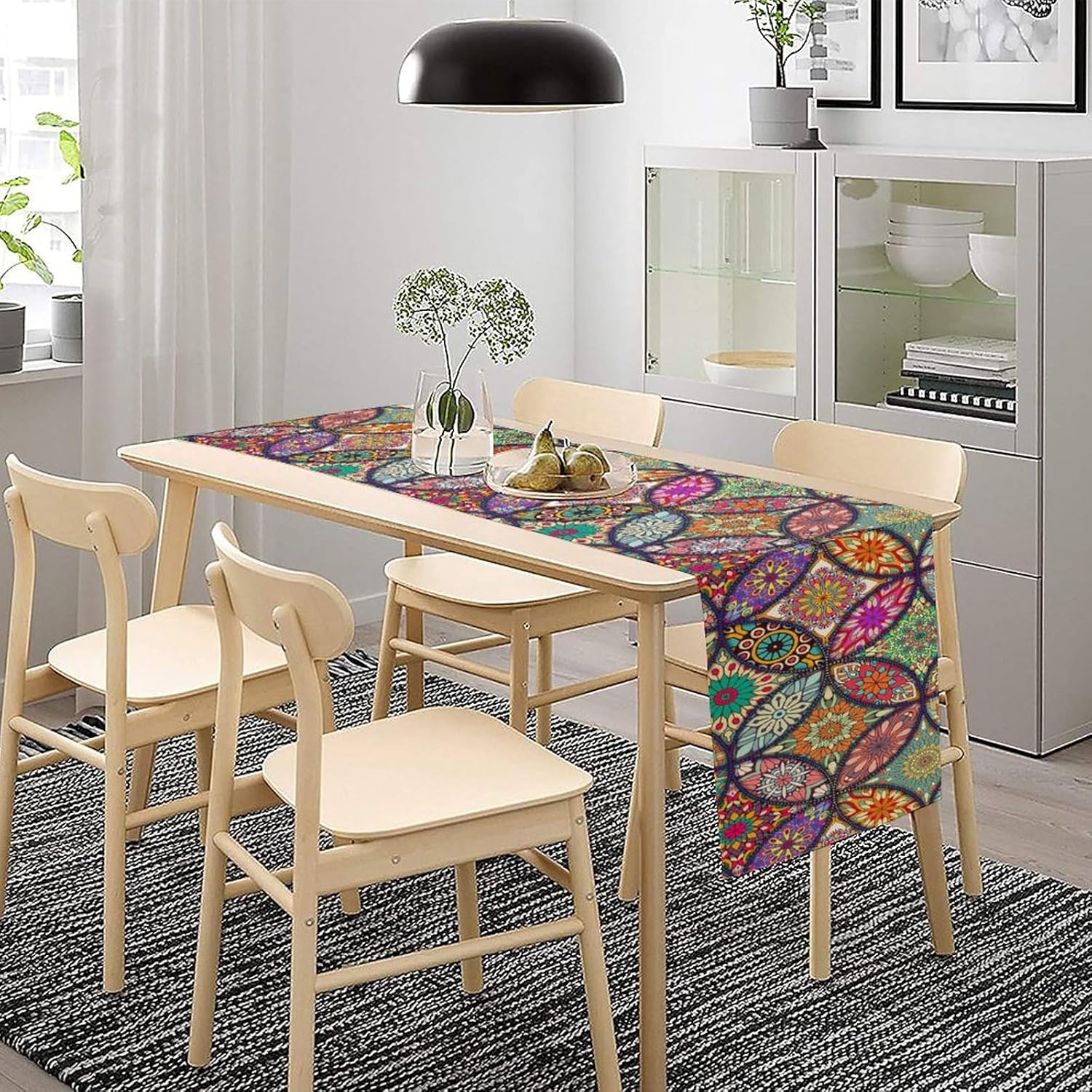 Boho Floral Table Runner,Colorful Flower Retro Bohemian Table Cloth Kitchen Dining Table Home Party Decoration 13x90 Inch